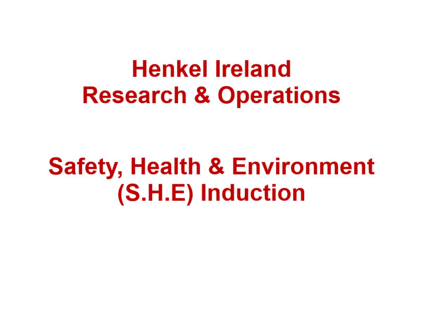 [Audio] We hope that you now have a better understanding of Henkel's commitment to ensure the Safety Health and Environment of all who work or visit their sites as well as the expectations of excellent housekeeping standards. If you have any questions about what we have discussed please refer to the Induction Questionnaire and all online training modules issued in the ‘Welcome to Henkel’ email. Thank you for your attention and for listening to this presentation..