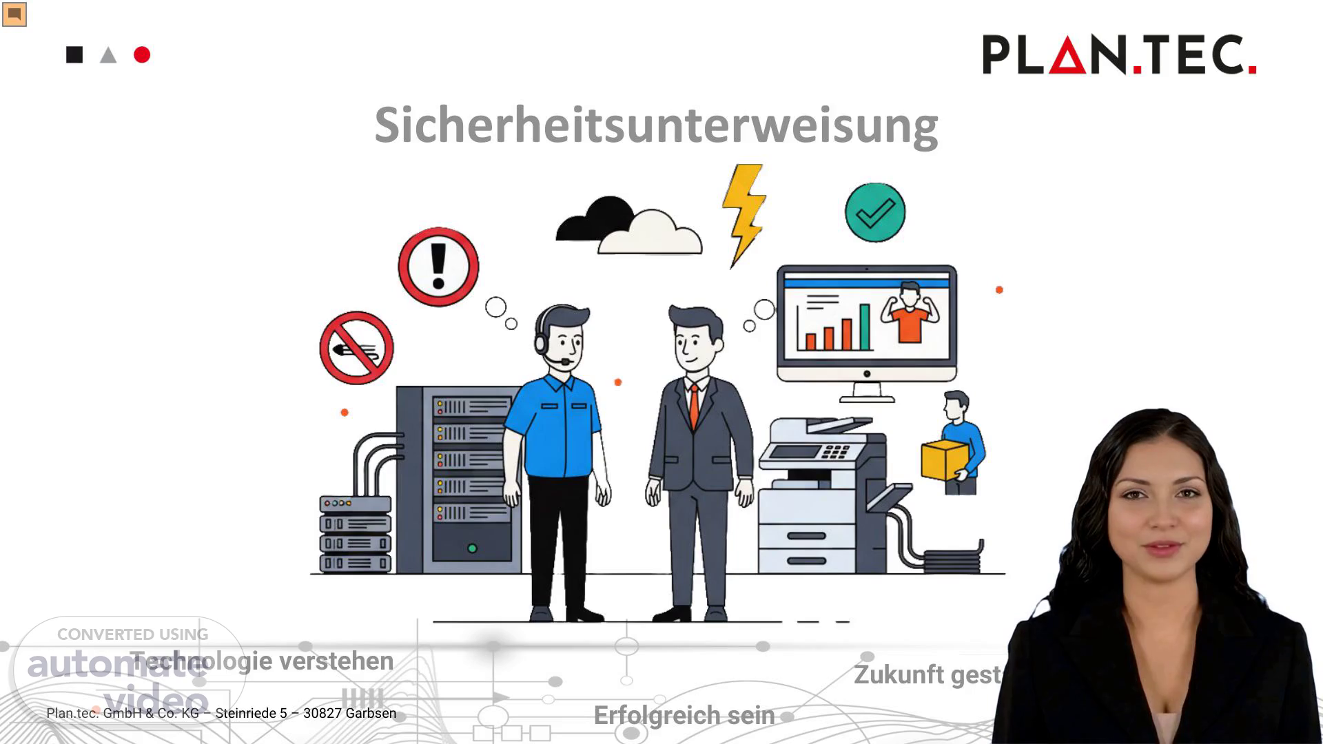 [Virtual Presenter] Die folgenden Aspekte müssen beachtet werden: - Die Sicherheit der Mitarbeiter - Die Gesundheit des Mitarbeiters - Die Sicherheit der Maschinen und Anlagen - Die Sicherheit der Umwelt - Die Sicherheit der Kunden - Die Sicherheit der Mitarbeiter in der Nachsorge - Die Sicherheit der Mitarbeiter während der Arbeit - Die Sicherheit der Mitarbeiter bei der Abreise - Die Sicherheit der Mitarbeiter nach dem Unfall - Die Sicherheit der Mitarbeiter bei der Übertragung von Informationen - Die Sicherheit der Mitarbeiter bei der Nutzung von Werkzeugen und Geräten.