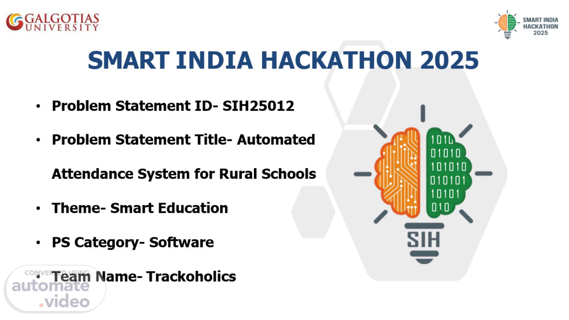 [Audio] Smart India Hackathon 2025 Problem Statement ID sih25012 Problem Statement Title Automated Attendance System for Rural Schools Theme Smart Education PS Category Software Team Name Trackoholics.