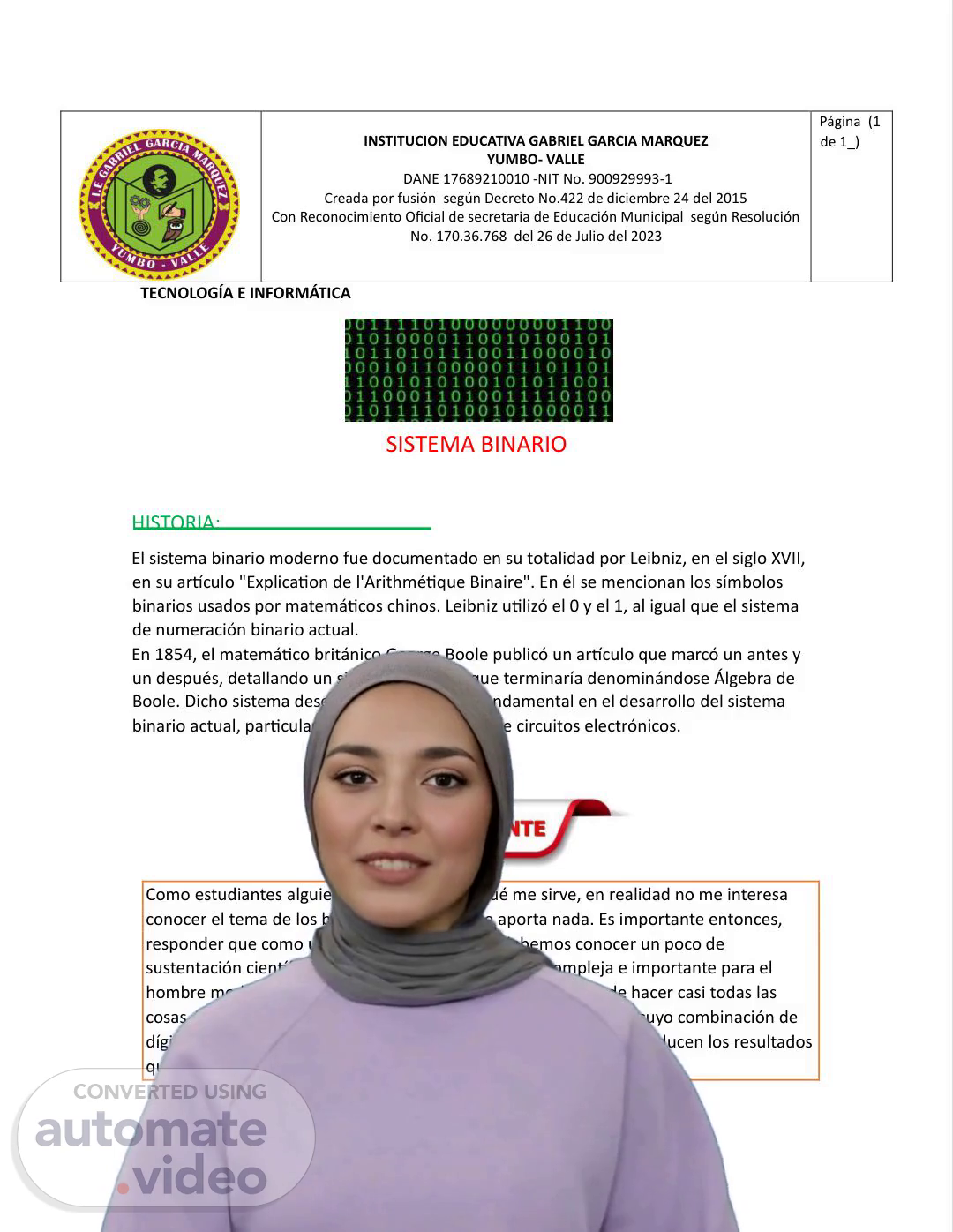 [Virtual Presenter] La historia del sistema binario se remonta al siglo XVII cuando el filósofo alemán Gottfried Wilhelm Leibniz lo describió en su obra "Explicación de la Aritmética Binaria" en 1679. Utilizó los símbolos 0 y 1 para representar valores verdaderos y falsos, respectivamente. Posteriormente, el matemático inglés George Boole construyó sobre el trabajo de Leibniz en su artículo de 1854 "Una Investigación de las Leyes del Pensamiento", desarrollando un sistema lógico conocido como álgebra booleana. Este sistema fundó la base para el sistema binario moderno, que ahora se utiliza ampliamente en electrónica y computación. En esencia, el sistema binario consiste solo en dos dígitos: 0 y 1. Al combinar estos dígitos, podemos crear varios símbolos, números, letras y otras representaciones que nos permiten interactuar con ordenadores y realizar cálculos. Como usuarios de ordenadores, es fundamental tener algún entendimiento de la ciencia subyacente detrás de cómo estas máquinas procesan la información. El sistema binario ha revolucionado la forma en que vivimos y trabajamos, haciendo muchas tareas más fáciles y eficientes. Por lo tanto, exploraremos este fascinante tema aún más..