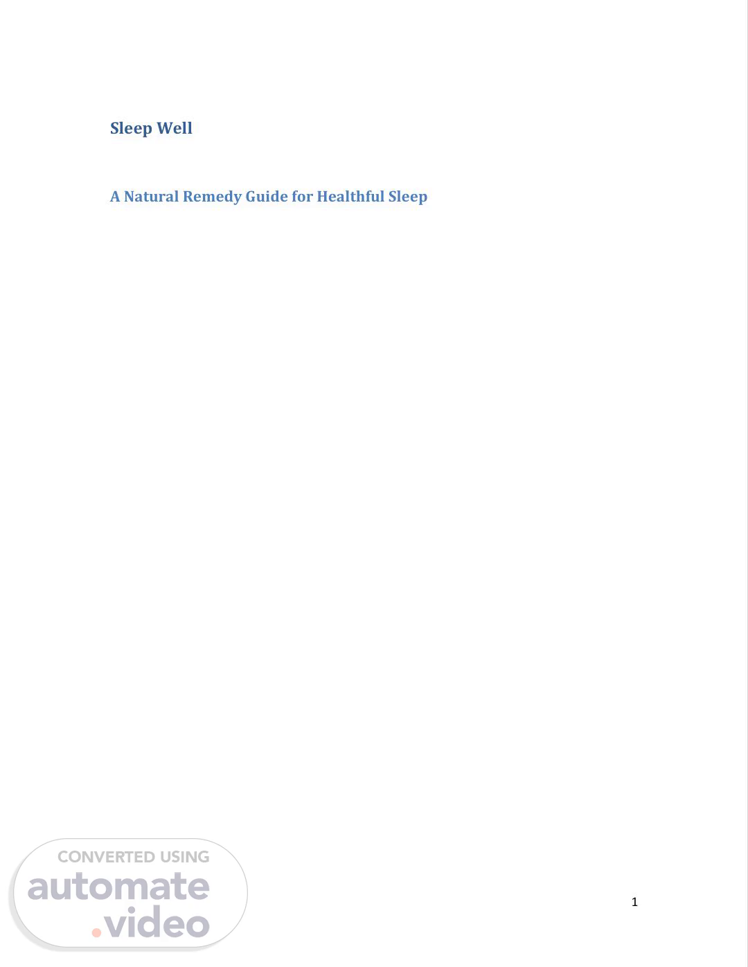 1 Sleep Well A Natural Remedy Guide for Healthful Sleep.