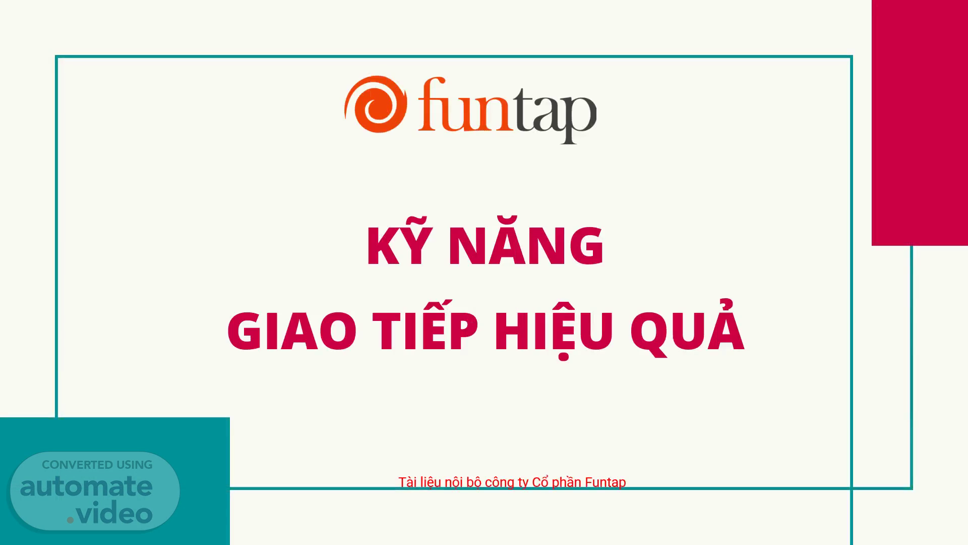 KỸ NĂNG GIAO TIẾP HIỆU QUẢ. Tài liệu nội bộ công ty Cổ phần Funtap.