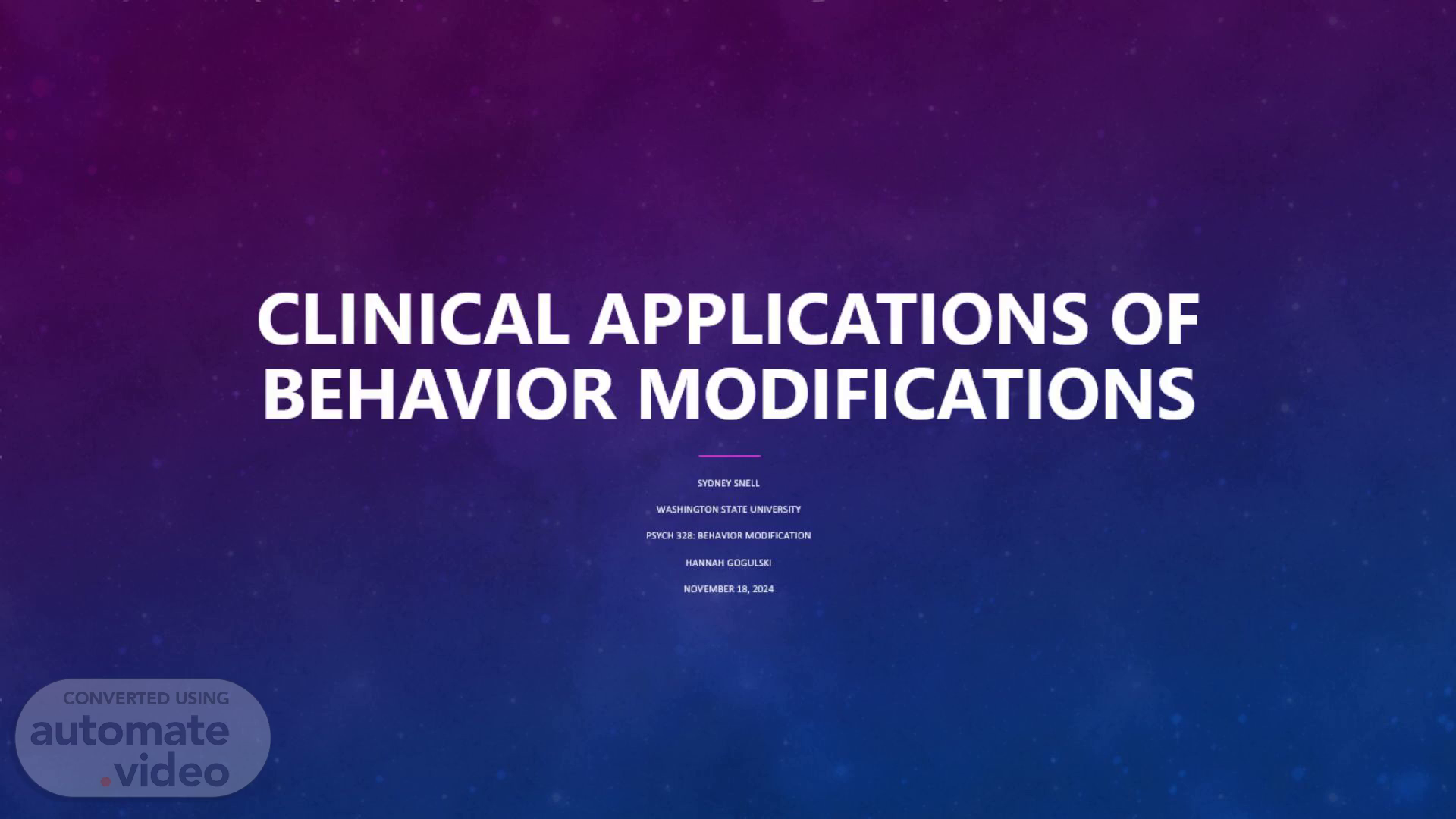 [Audio] Clinical Applications of behavior modifications by Sydney Snell, Washington state university psyh 328.