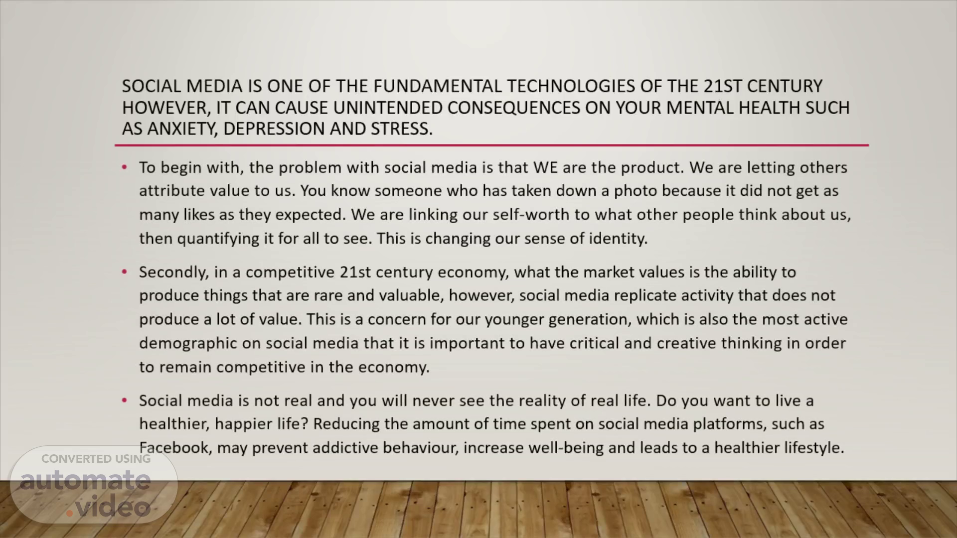 Social media is one of the fundamental technologies of the 21st century however, it can cause unintended consequences on your mental health such as anxiety, depression and stress.