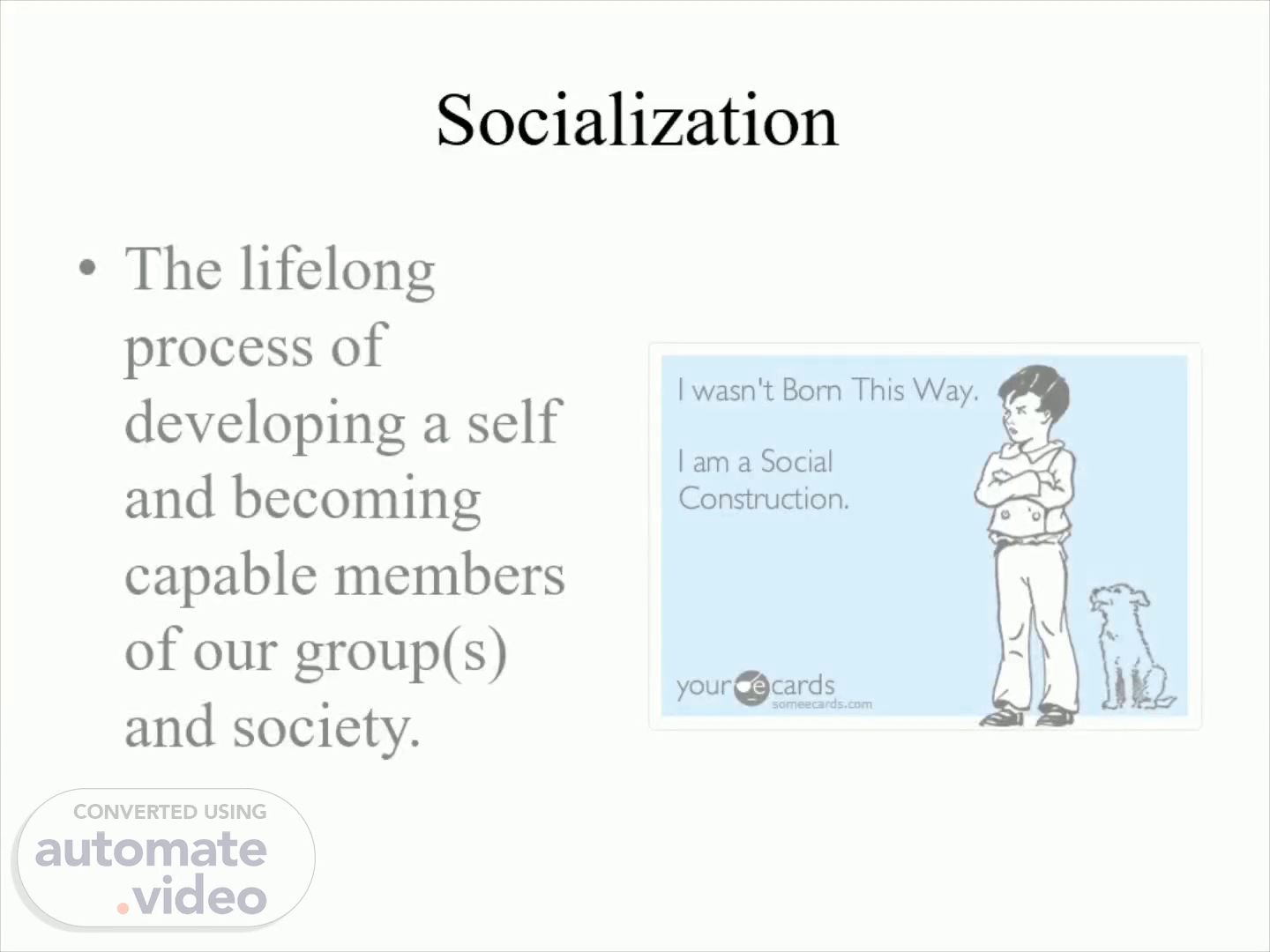 Socialization. The lifelong process of developing a self and becoming capable members of our group(s) and society..