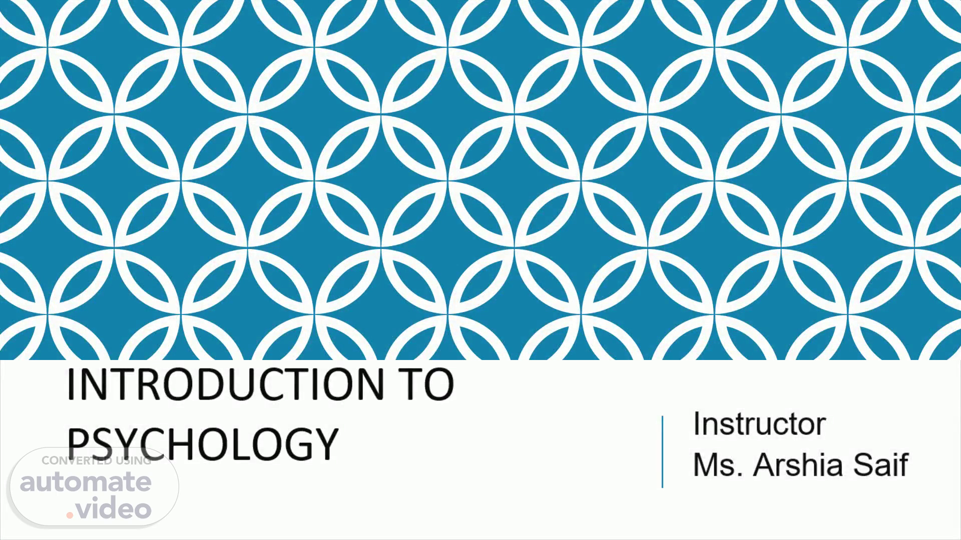 INTRODUCTION TO PSYCHOLOGY. Instructor Ms. Arshia Saif.