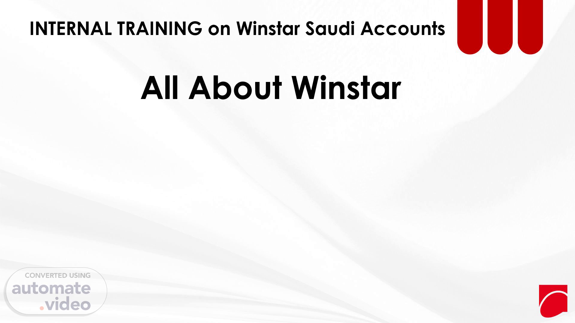[Audio] Hello and welcome to the first video in this training series! Congratulations on being selected to join the Masters Accounting team. We're excited to have you on board and look forward to your positive contributions. In today's session, we'll be diving into an introduction to Winstar Accounting & End to End work.