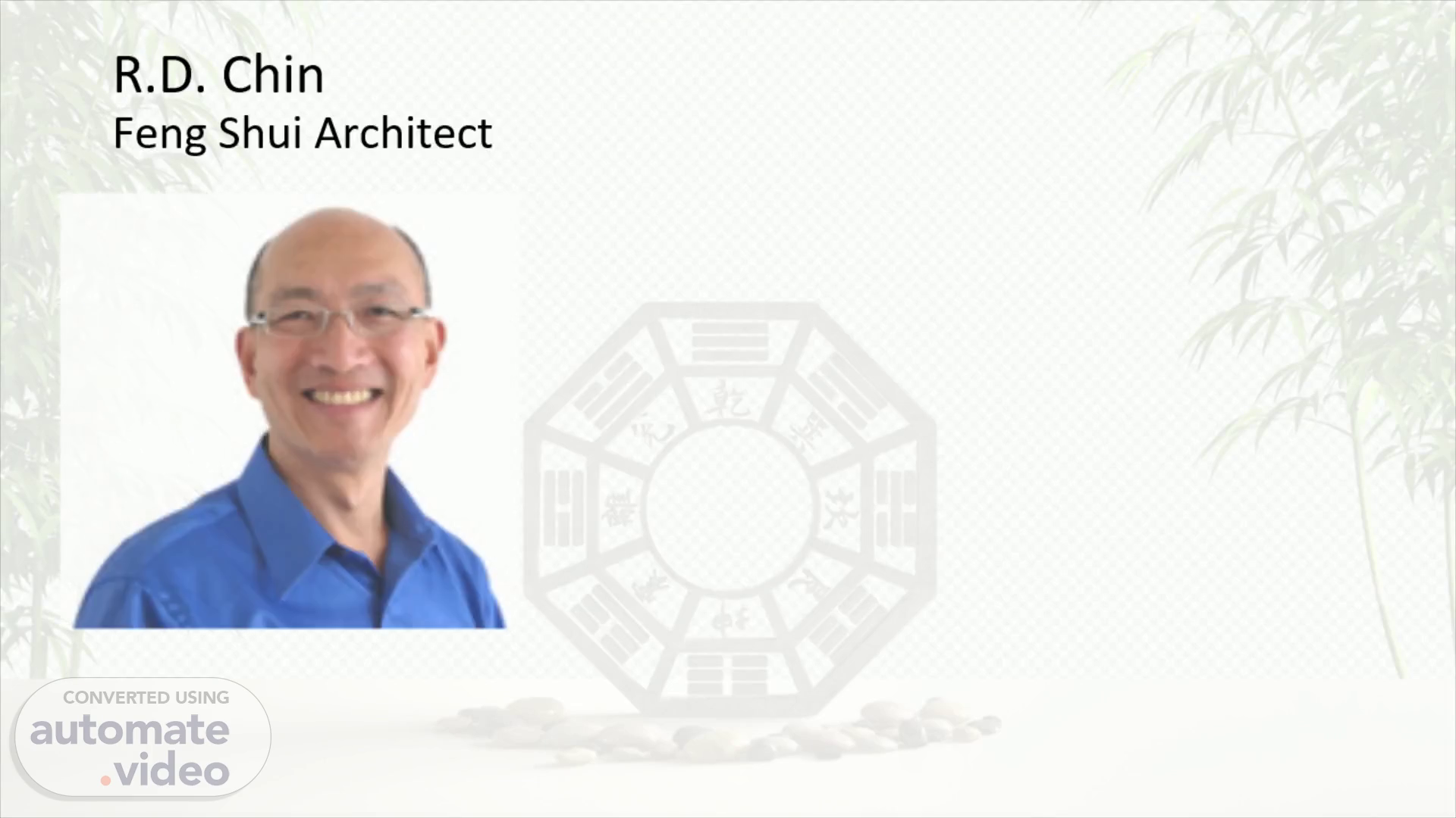 R.D. Chin Feng Shui Architect. 1. Master R.D. Chin is an architect and interior designer who has been a Feng Shui practitioner for about a decade, and has become very popular teacher and consultant in both Europe and the USA He founded Space Alignment (now called R.D. Chin, Feng Shui Architect), an architectural consultant practice in NYC Qualifications Civil Engineering Degree from Tufts University Master Degree in Architecture from U. Penn. Licensed Architect in New York State NCIDQ Interior Designer Representative Projects: National Black Theatre, Standard Chartered, HSBC branch offices, One Flushing 2019, 150 Rivington Street.