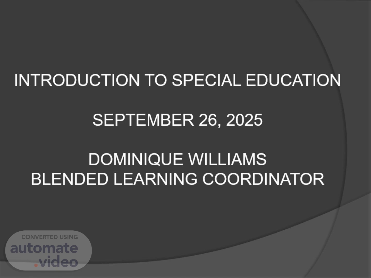 [Audio] Introduction To Special Education September 26, 2025 Dominique Williams Blended Learning Coordinator.