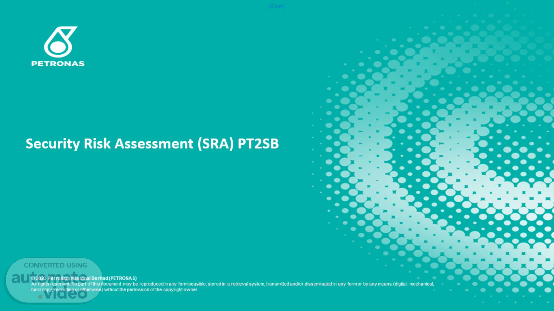 [Audio] Today I am here to present an internal security risk assessment report of the Pengerang Integrated Complex located in the Group Security Pengerang Region. This report was conducted on the 20th of March of 2024. It provides an in-depth overview of the security risks and potential vulnerabilities of the complex. We hope that this report provides better understanding of the current security status and how it can be improved..
