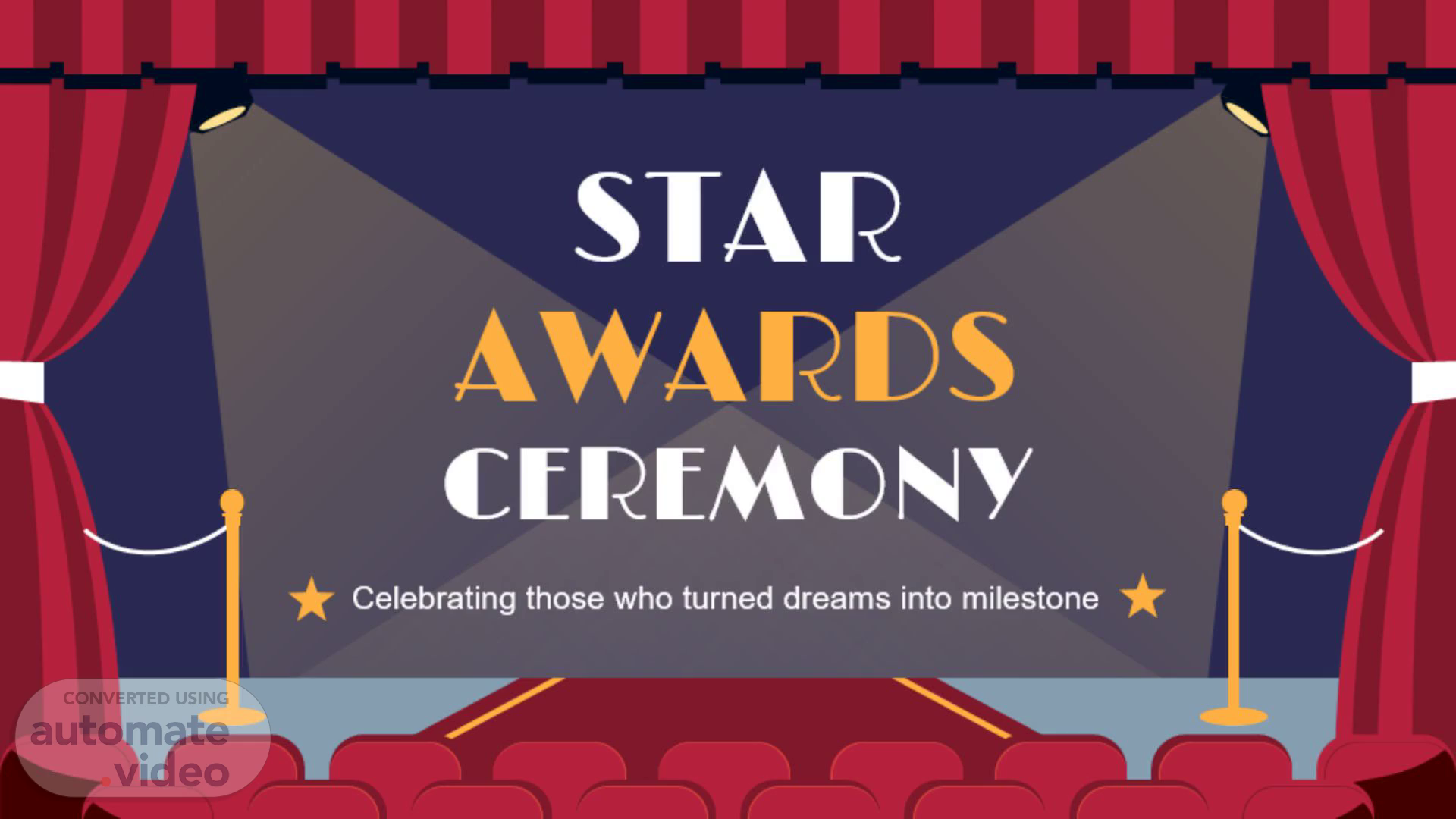 [Audio] Hello everyone, it is a pleasure to have you all here for our Star Awards Ceremony. Today, we have gathered to celebrate and acknowledge the outstanding success and performance of our individuals. This ceremony serves as a testament to our organization's dedication to recognizing and applauding hard work and dedication. Get ready to be dazzled as we take a walk on the red carpet and present our prestigious awards. So sit back, relax, and be inspired by the incredible achievements of our top performers. Without delay, let's begin our presentation..