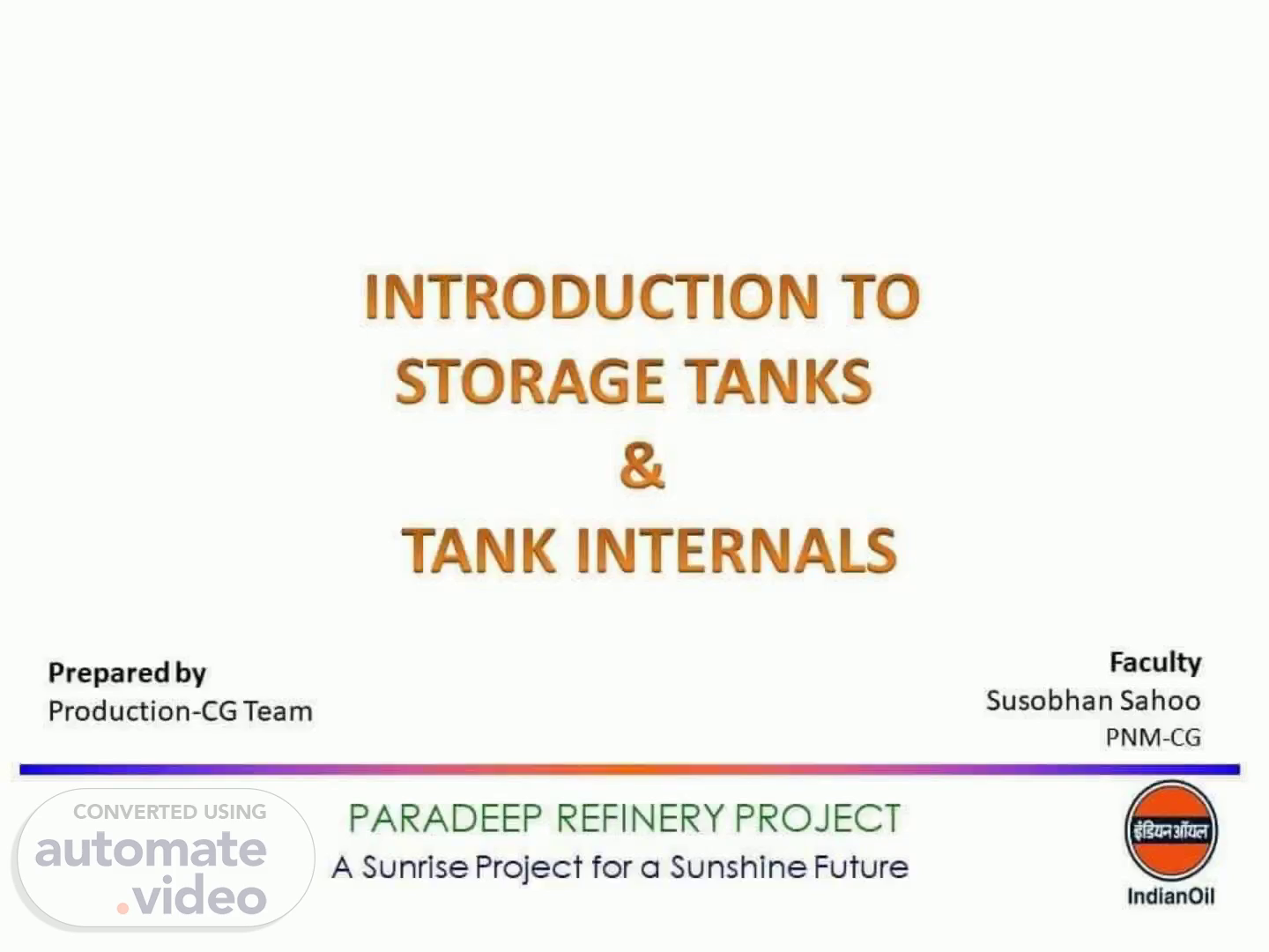 . INTRODUCTION TO STORAGE TANKS TANK INTERNALS Prepared by Production-CG Team PARADEEP REFINERY PROJECT A Sunrise Project for a Sunshine Future Faculty Susobhan Sahoo IndianOil.
