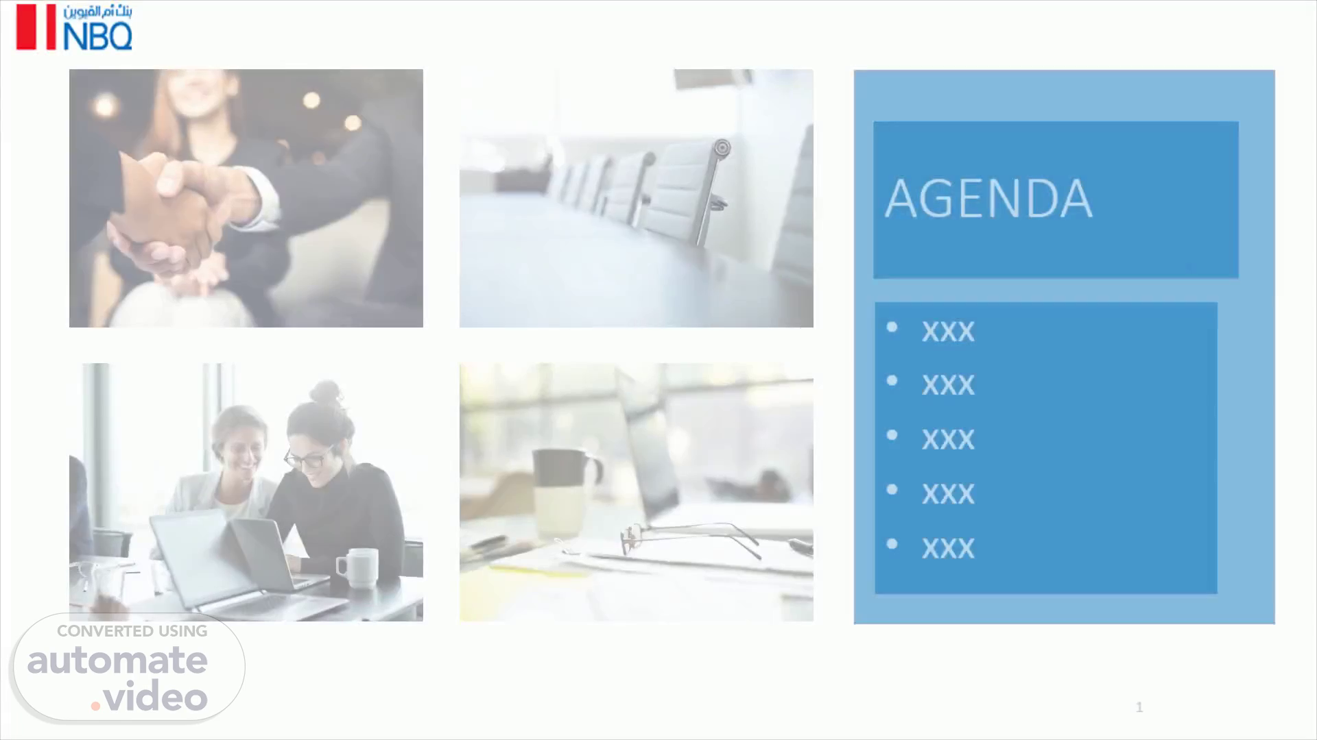 [Audio] AGENDA. AGENDA. 1. Handshake. A close-up of a table & chairs.