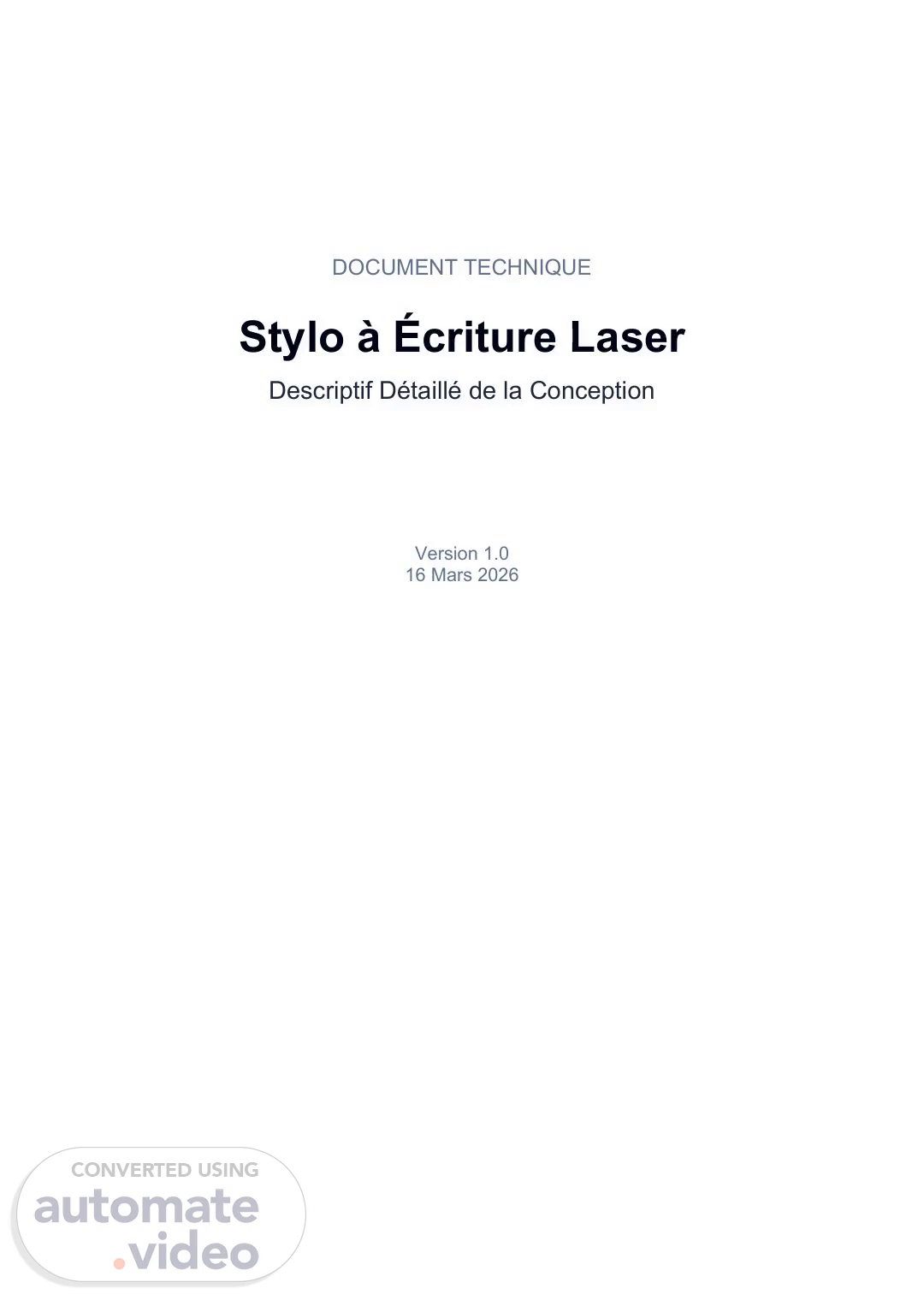 [Audio] DOCUMENT TECHNIQUE Stylo à Écriture Laser Descriptif Détaillé de la Conception Version 1.0 16 Mars 2026.
