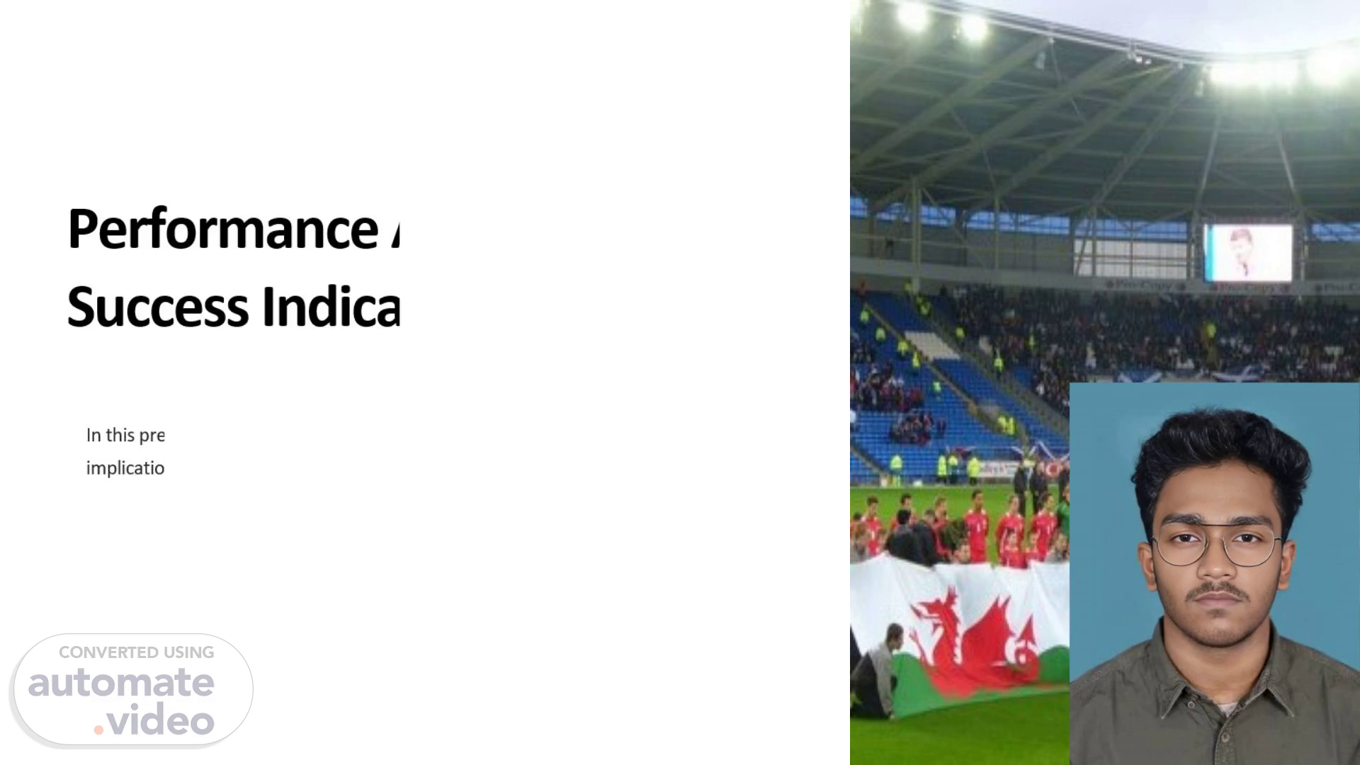 [Audio] We explored how key success indicators in football can inform team strategies for the future. We hope this presentation has taken you beyond the basics of football, by delving into the implications of various success indicators and how they might be used to shape the future of the sport. We thank you for listening and hope you found it an informative and enjoyable journey!.