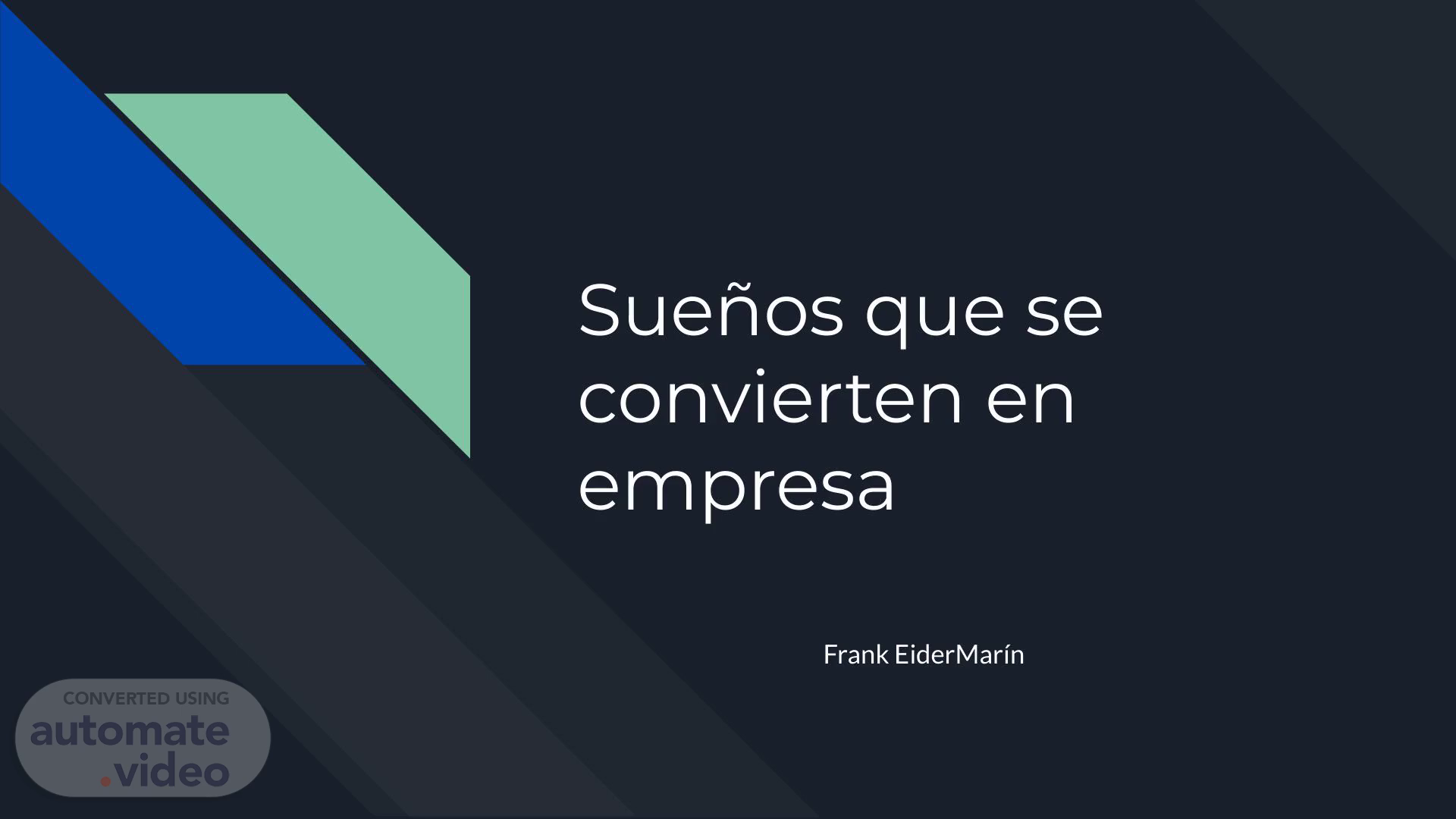 [Audio] Buenas tardes a todos. Les doy la bienvenida a esta presentación sobre cómo los sueños pueden hacerse realidad a través del emprendimiento. Hoy les hablaré sobre la historia de Frank EiderMarín y cómo sus sueños le permitieron convertirse en un exitoso empresario. Los invito a descubrir juntos las habilidades y motivaciones necesarias para alcanzar el éxito en el mundo de los negocios. ¡Empecemos!.
