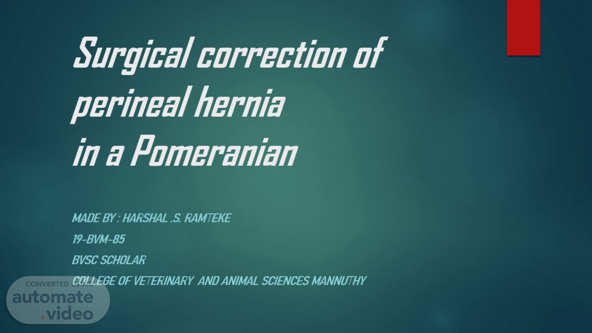 [Audio] Surgical correction of perineal hernia in a Pomeranian was performed by Harshal S. Ramteke, a BVSc scholar at the College of Veterinary and Animal Sciences, Mannuthy..