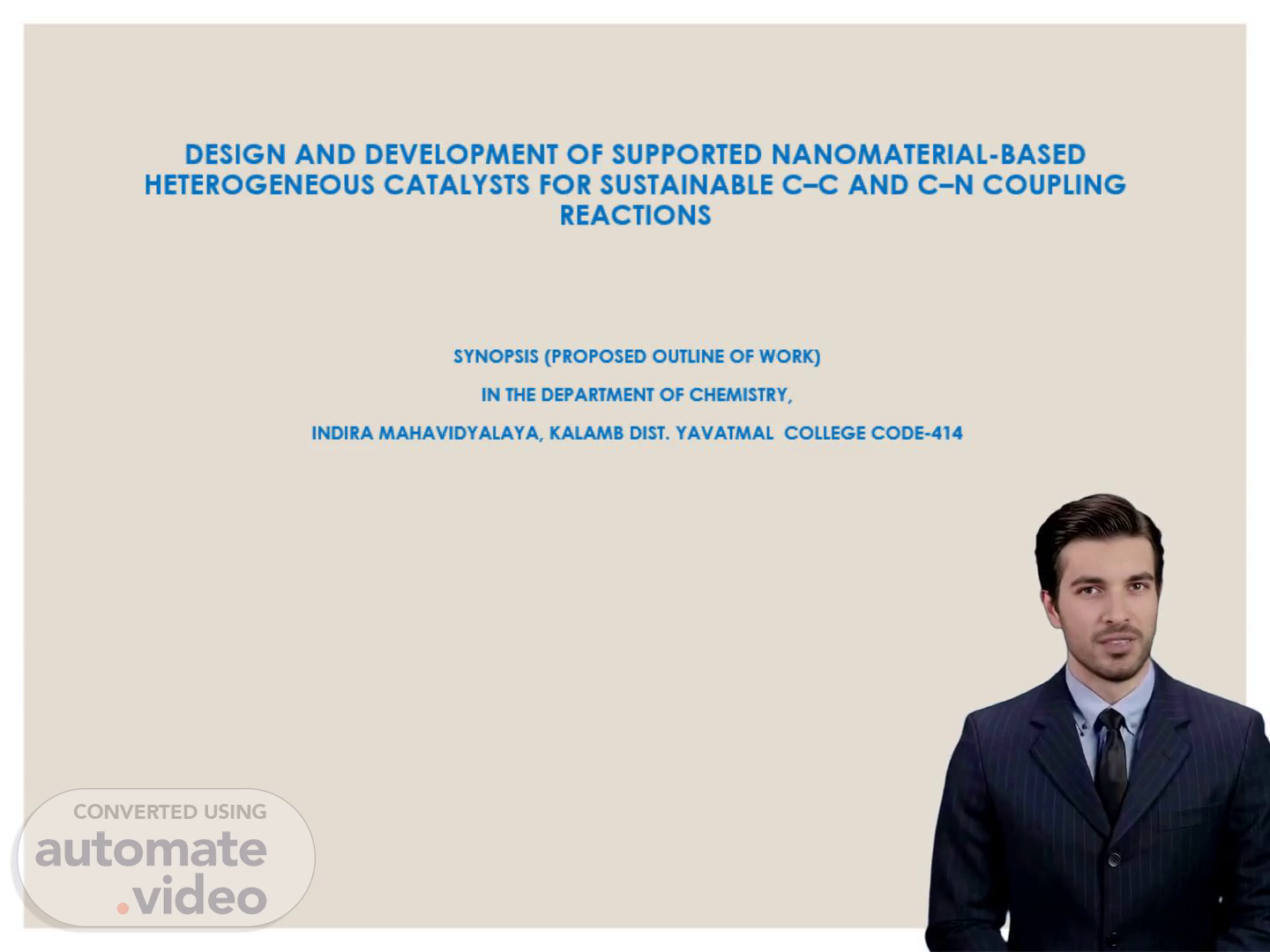 [Virtual Presenter] The Design and Development of Supported Nanomaterial-Based Heterogeneous Catalysts for Sustainable C-C and C-N Coupling Reactions is a research area focused on creating novel catalysts using nanomaterials that can efficiently facilitate chemical reactions while minimizing environmental impact. This project aims to explore the potential of supported nanomaterial-based heterogeneous catalysts in achieving sustainable coupling reactions, which are crucial for the synthesis of various compounds such as pharmaceuticals, agrochemicals, and materials. The research guide, Dr. Dasharath M. Chavhan, and the research scholar, Lt. Ashvin G. Godghate, will lead this initiative, providing expertise in catalyst design and reaction optimization. Their collaboration will enable the development of innovative catalysts that can effectively reduce waste and energy consumption in chemical processes. By working together, researchers can advance their understanding of sustainable catalysis and its applications in real-world scenarios..