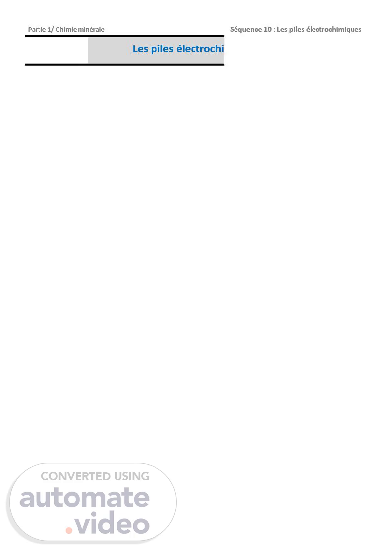 Partie 1/ Chimie minérale. Séquence 10 : Les piles électrochimiques.