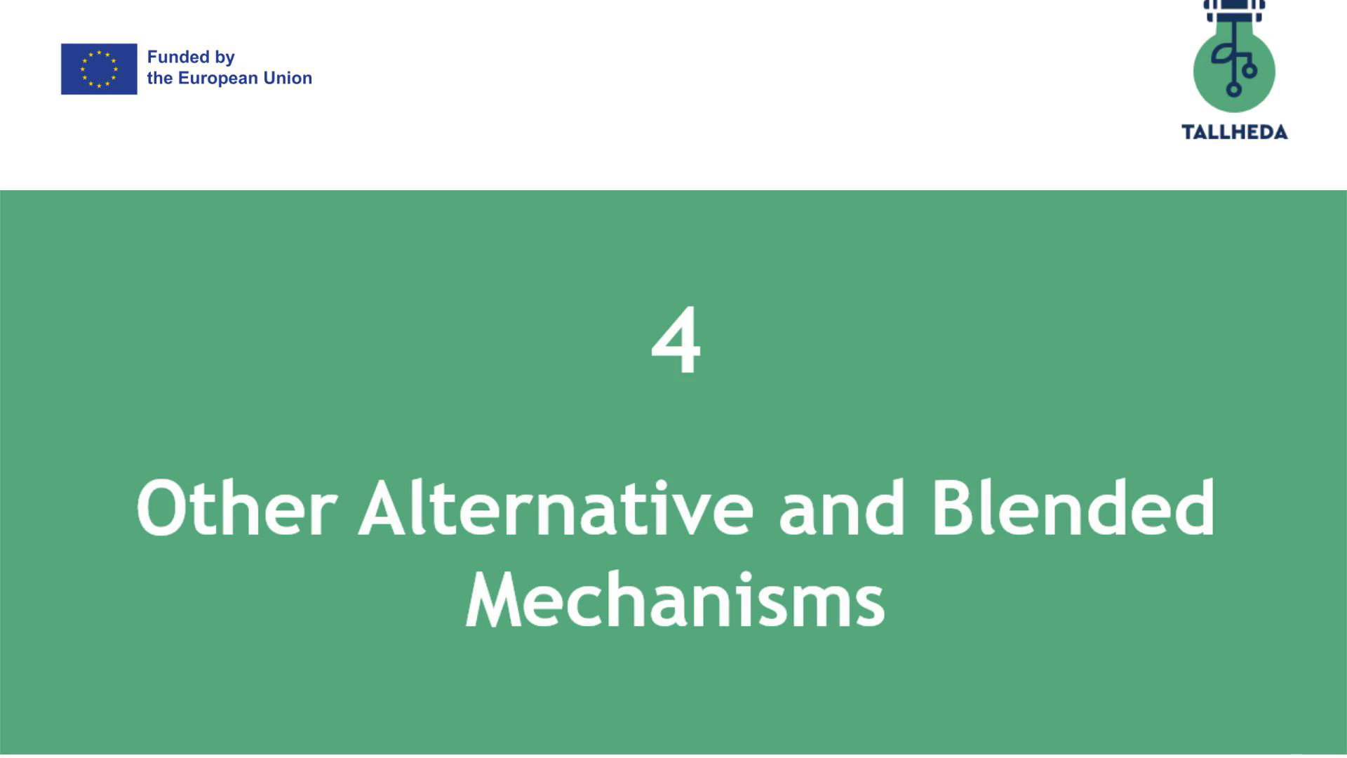 [Audio] Τώρα θα συνεχίσουμε με το Module 4, με τίτλο «Άλλοι εναλλακτικοί και μικτοί μηχανισμοί χρηματοδότησης»..