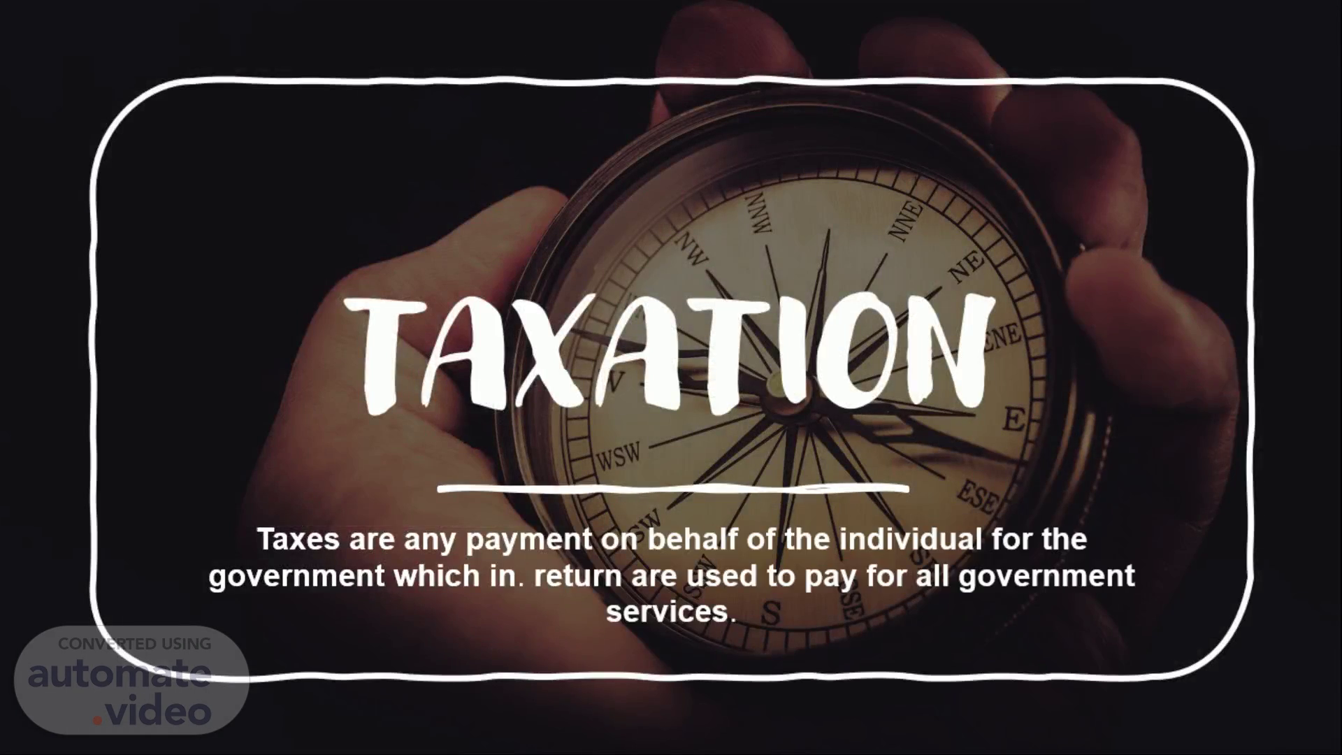 A closeup photo of a hand holding a compass. TAXATION.