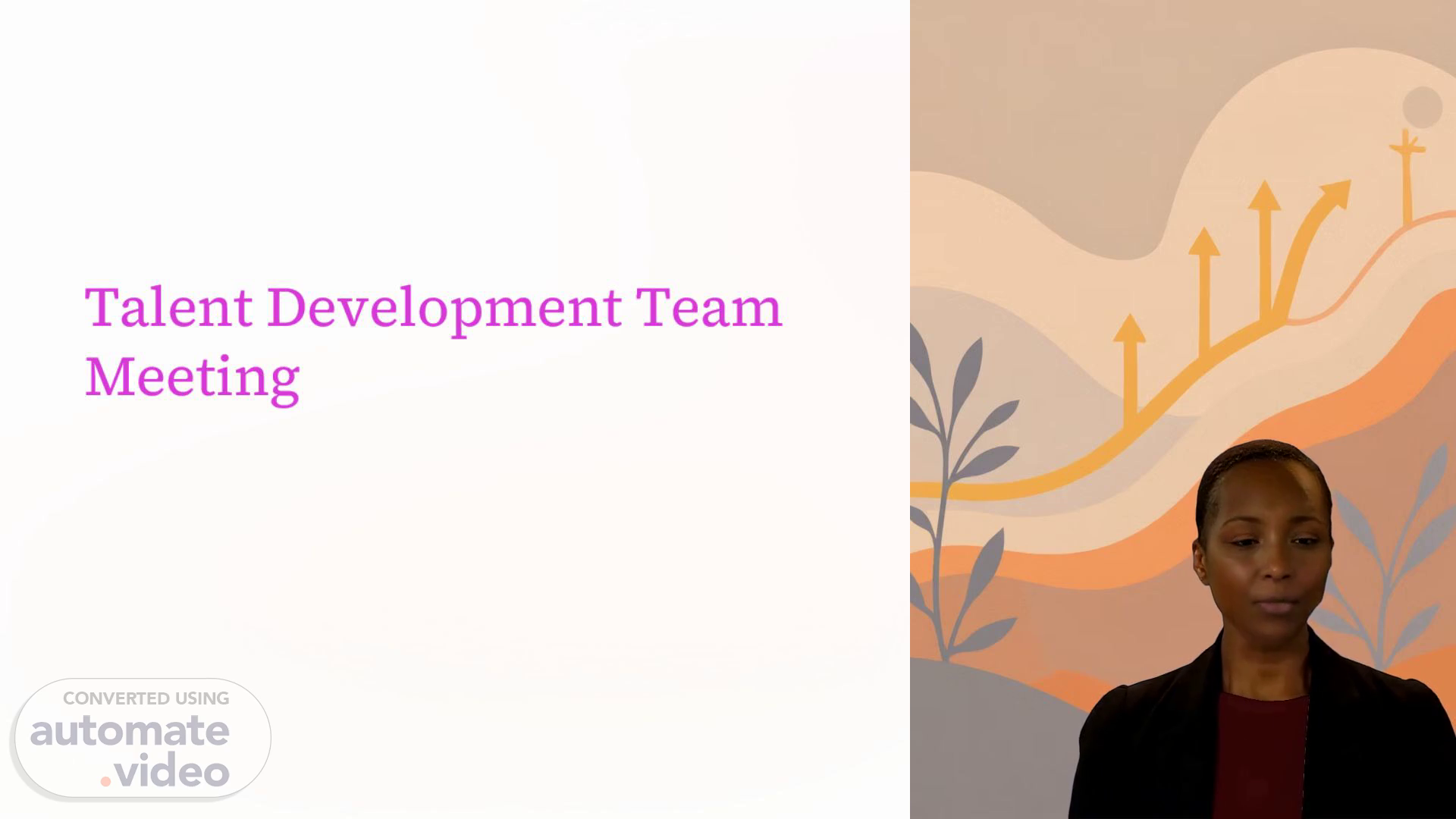 [Audio] The Talent Development Team will conduct regular progress check-ins with each team member to monitor their performance and provide feedback. The team will also set specific goals and objectives for each team member to achieve, and track their progress over time. This will enable the team to identify areas where employees need additional support or training, and make necessary adjustments to ensure that all employees have the skills and knowledge required to excel in their roles. By setting clear expectations and providing regular feedback, the team can help employees feel more engaged and motivated, leading to improved job satisfaction and reduced turnover rates. Regular progress check-ins will also help the team to stay focused on key performance indicators and ensure that everyone is working towards the same goals..