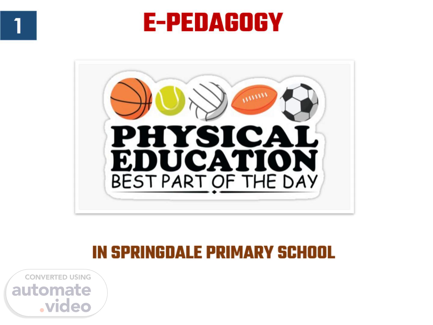 [Audio] E-pedagogy In Springdale Primary School Welcome to Team PE PLC's presentation on ePedagogy in Physical Education! We are excited to explore the innovative ways technology is transforming the teaching and learning experience in PE. Join us as we delve into the intersection of digital tools and physical activity to enhance student engagement and outcomes. Let's embark on this journey together towards a more dynamic and interactive approach to PE education. Enjoy the presentation!.
