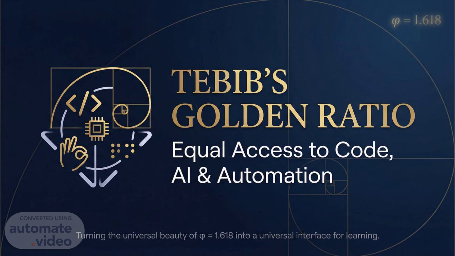 p = 1.618 TEBIB'S GOLDEN RATIO Equal Access to Code, A1 & Automation Turning the universal beauty of (P = 1.618 into a universal interface for learning..