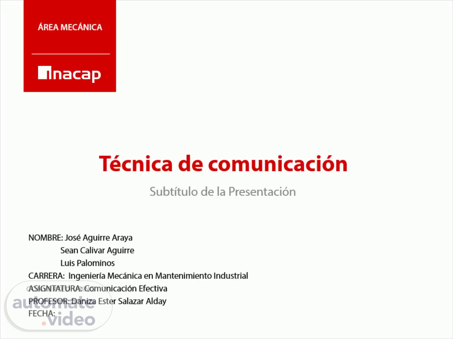 Técnica de comunicación. Á REA MECÁNICA. Subtítulo de la Presentación.