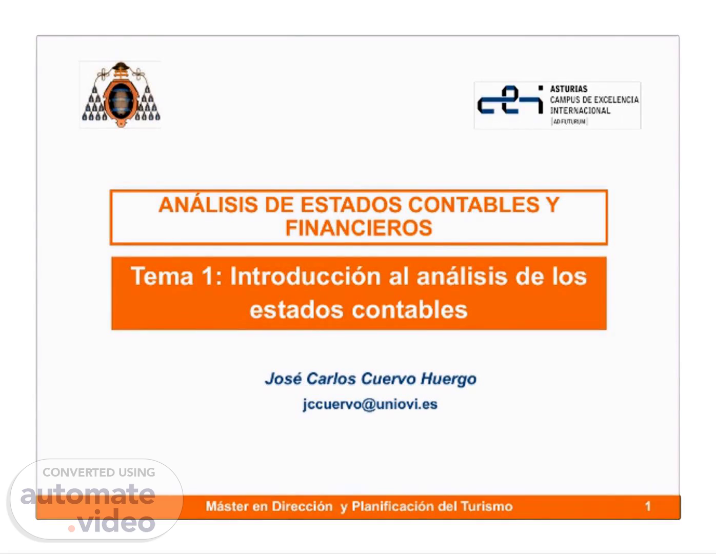 José Carlos Cuervo Huergo [email protected] ANÁLISIS DE ESTADOS CONTABLES Y FINANCIEROS Tema 1: Introducción al análisis de los estados contables 1 1 Máster en Dirección y Planificación del Turismo 1.