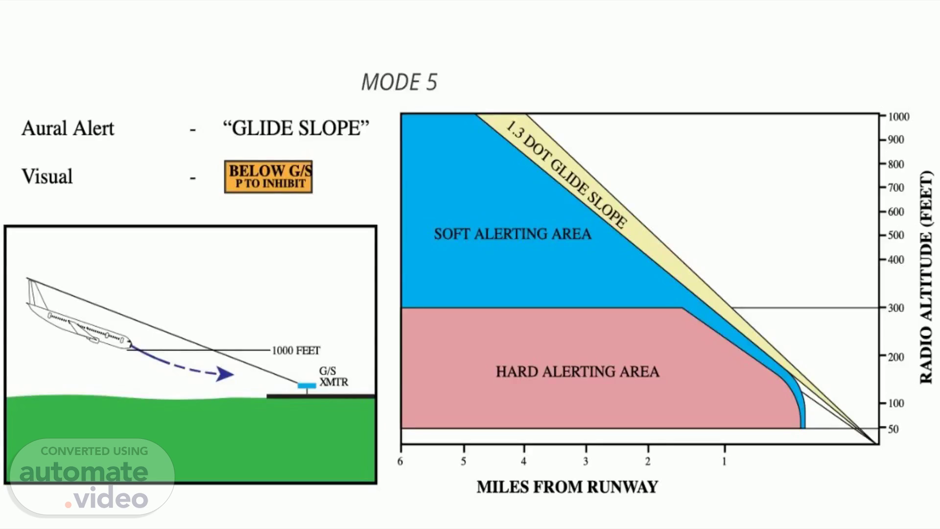[Audio] Mode 4 provides minimum terrain clearance protentional in all phases of flight. There are three types of Mode 4 alerts, Mode 4A and Mode 4B (both active during cruise and approach), and Mode 4C active during takeoff. Mode 4A and Mode 4B trigger aural and visual alerts when terrain clearance is not sufficient based on the phase of flight, the configuration of the landing gear and the flaps, and the speed. Mode 4C triggers aural and visual alerts based on the minimum terrain clearance and the radio height of the aircraft. Mode 5 provides protection for inadvertent decent a glide slopes while on an ILS approach. GPWS monitors the flight path in relative to the glideslope centerline while on the ILS final approach course..