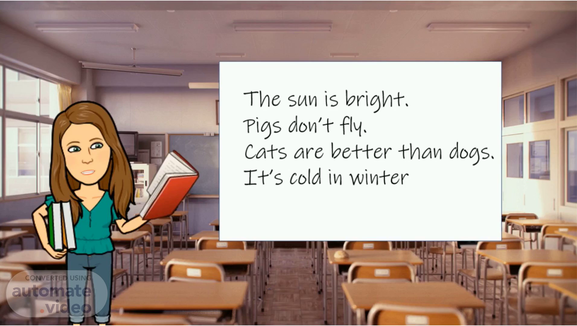 The sun is brioh+s Rios don'+ fly. Cats are better than doos. If's cold in winter.