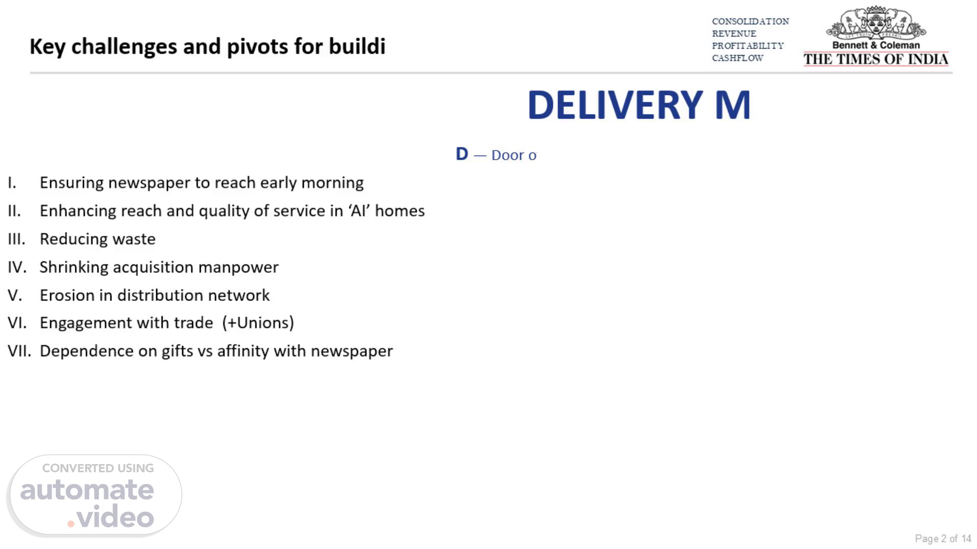 Key challenges and pivots for building future. DELIVERY MOAT.