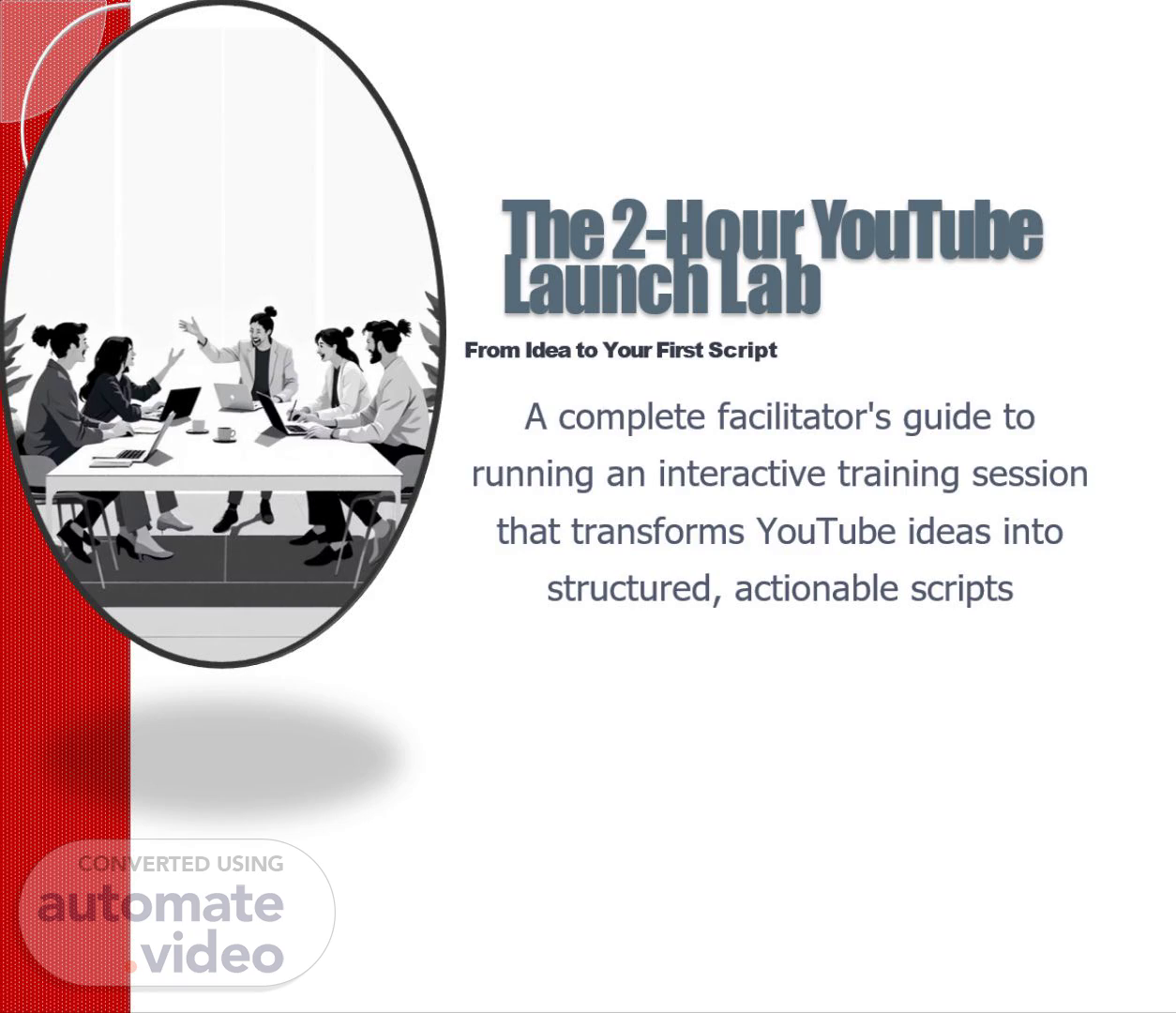[Audio] The 2-Hour YouTube Launch Lab From Idea to Your First Script A complete facilitator's guide to running an interactive training session that transforms YouTube ideas into structured, actionable scripts.