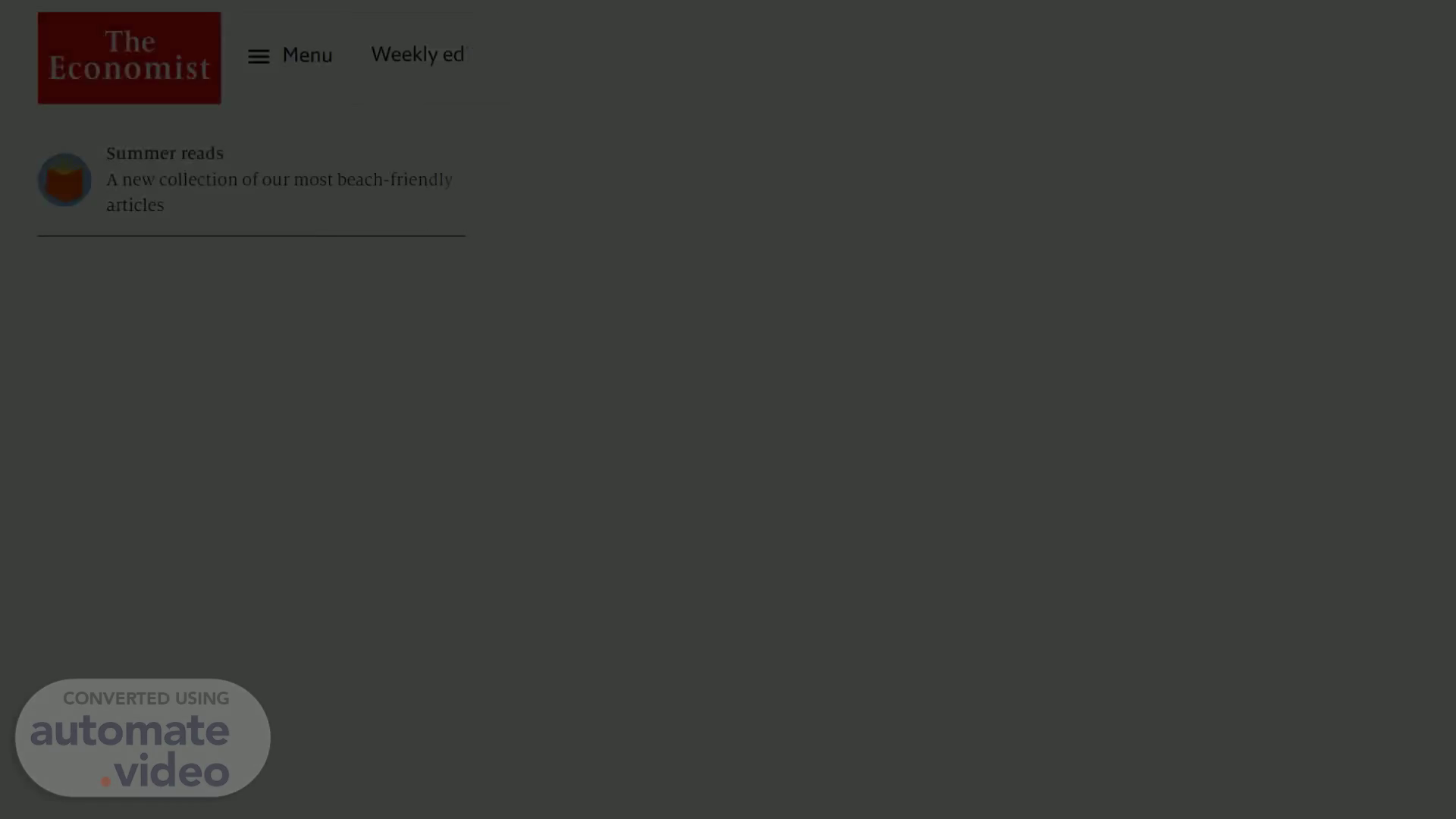 The Economist Summer reads Menu Weekly edition Q Search v Tory tracker A look at the candidates vying to be Britain's next prime minister Subscribe The Bottom Line Log in A new collection of our most beach-friendly articles Subscribe to our new business and technology newsletter.