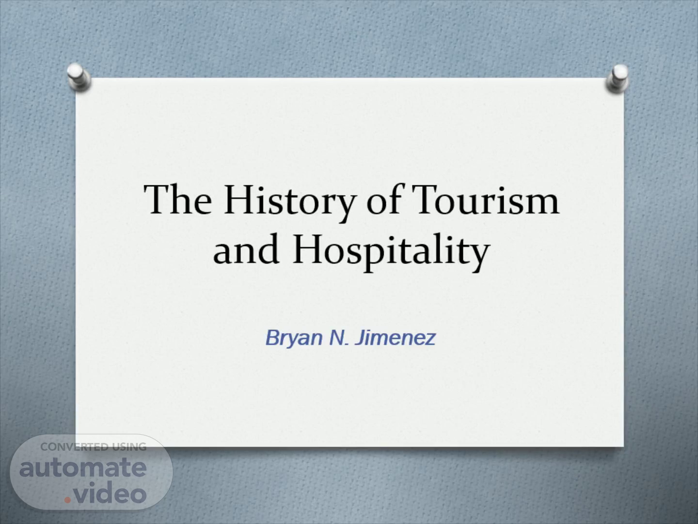 The History of Tourism and Hospitality. Bryan N. Jimenez.