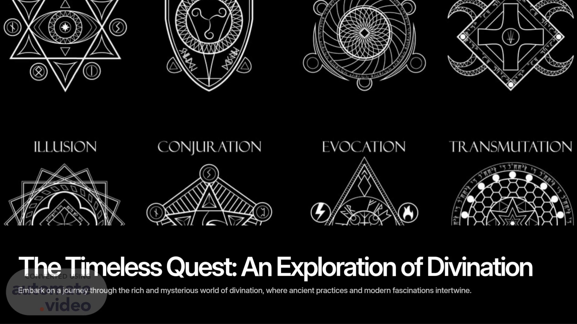 ILLUSION CONJURATION EVOCATION TRANSMUTATION The Timeless Quest: An Exploration of Divination Embark on a journey through the rich and mysterious world of divination, where ancient practices and modern fascinations intertwine..