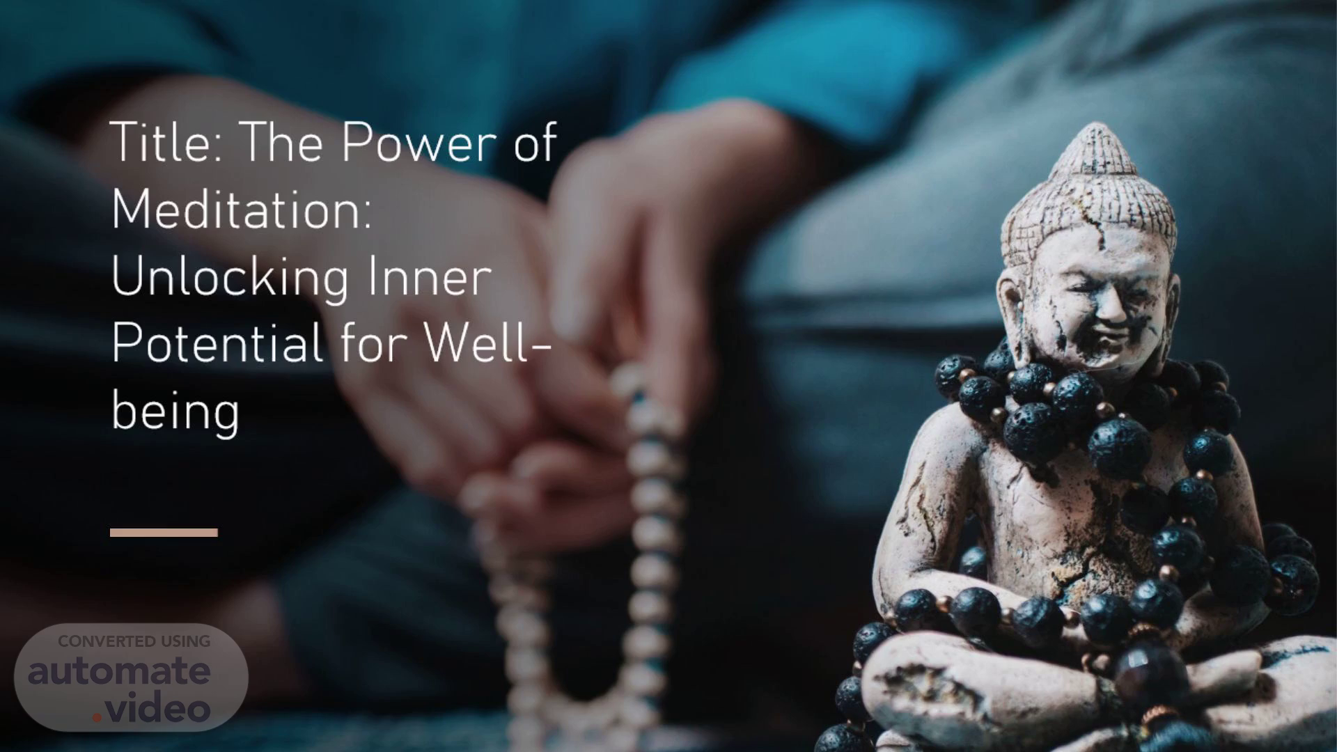 Slide 11: Conclusion. Recap of the power of meditation Encouragement for the audience to explore and incorporate meditation into their lives Closing remarks on the transformative potential of this ancient practice.