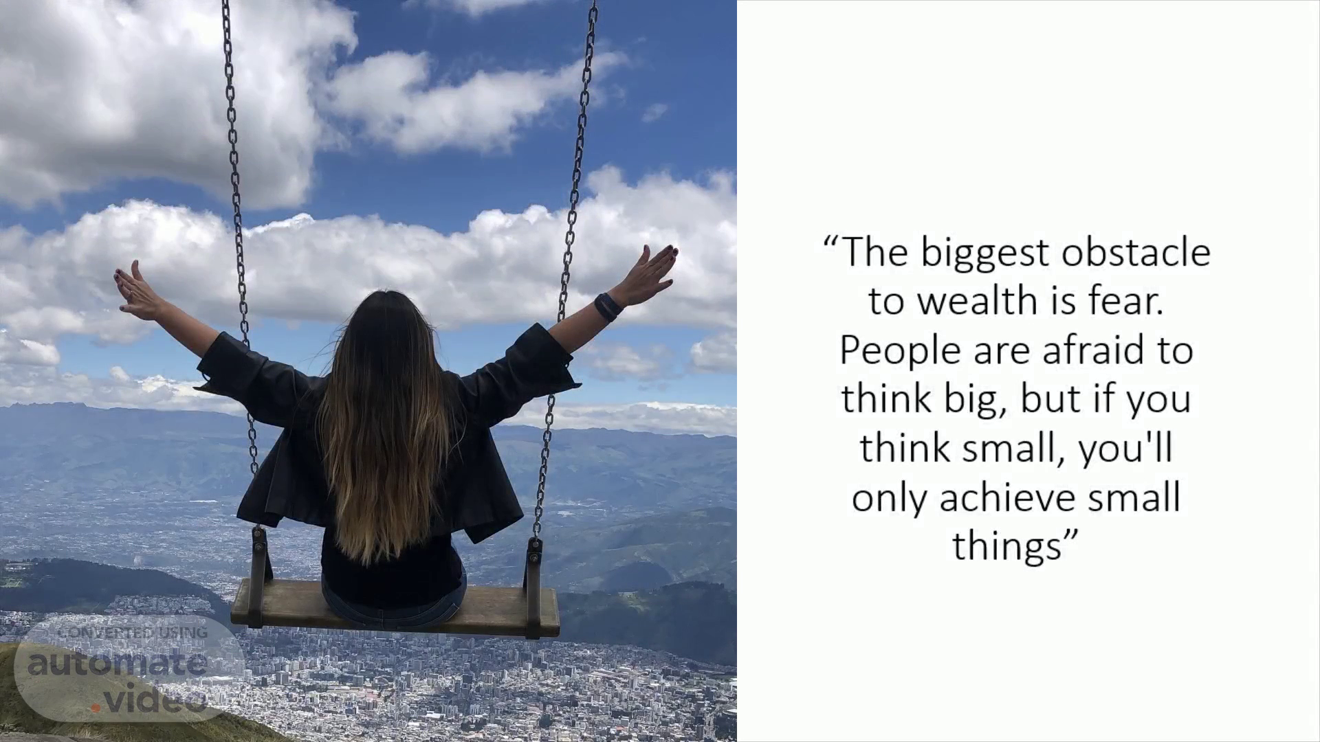 "The biggest obstacle to wealth is fear. People are afraid to think big, but if you think small, you'll only achieve small things"