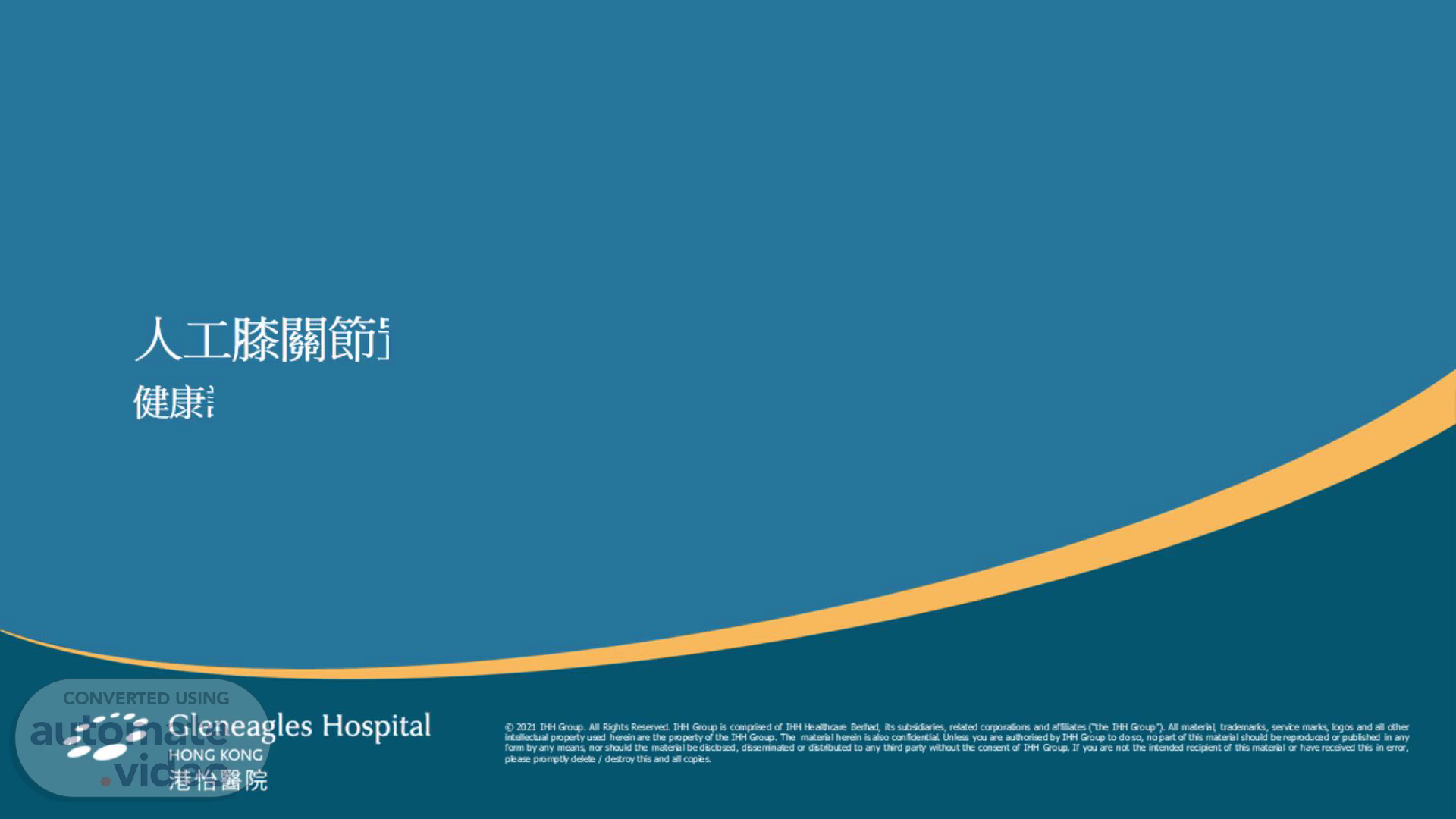 健康講座. 人工膝關節置換. 港怡醫院骨科病房. 2025年2月1日.