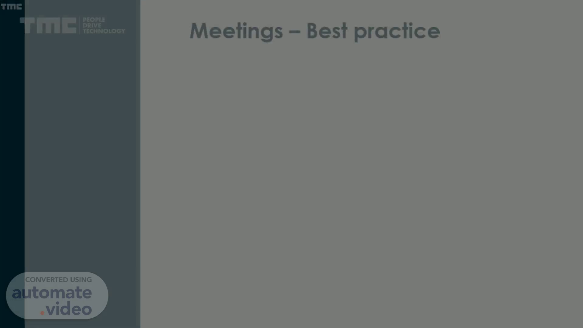 [Audio] Having a clear understanding of the purpose of the meeting, the goal to be achieved, and the type of meeting that best fits the situation is important for both the organizer and participants. Participants should also know their roles, what information they need to prepare, and the outcome they are aiming to achieve. This way, meetings can be well organized and successful..
