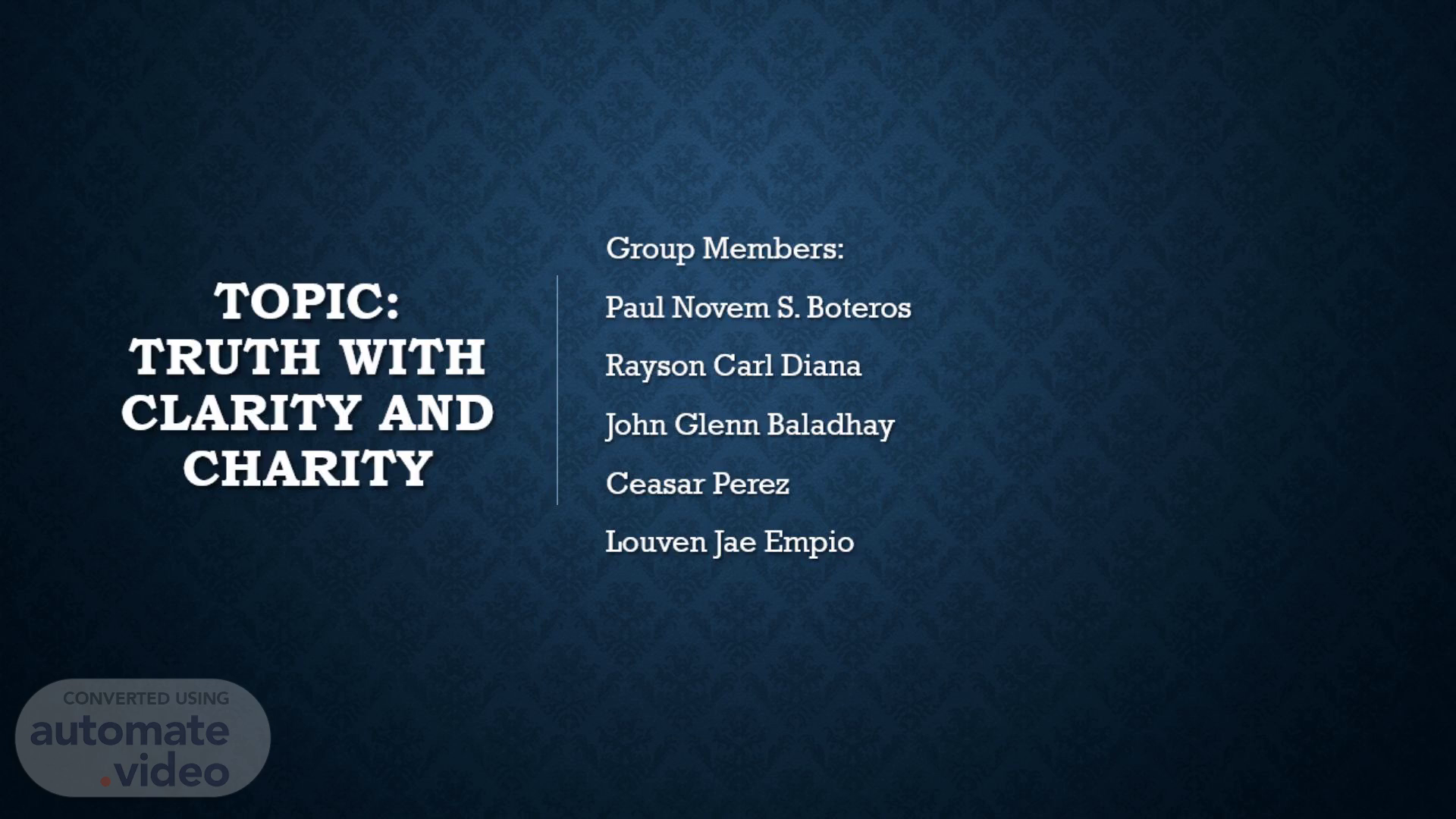 [Audio] Topic: Truth with Clarity and Charity Group Members: Paul Novem S. Boteros Rayson Carl Diana John Glenn Baladhay Ceasar Perez Louven Jae Empio.