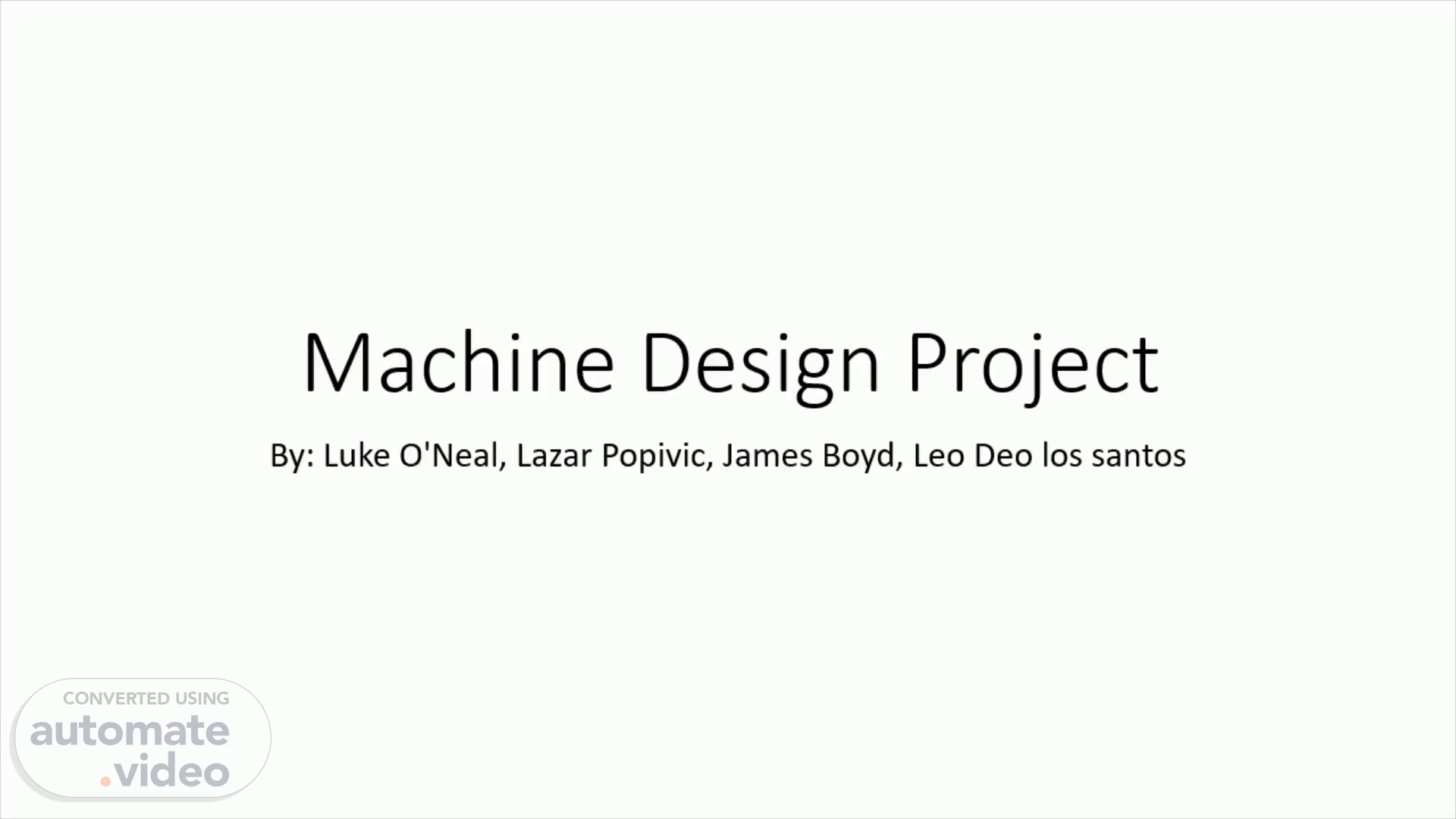 Machine Design Project. By: Luke O'Neal, Lazar Popivic , James Boyd, Leo Deo los santos.