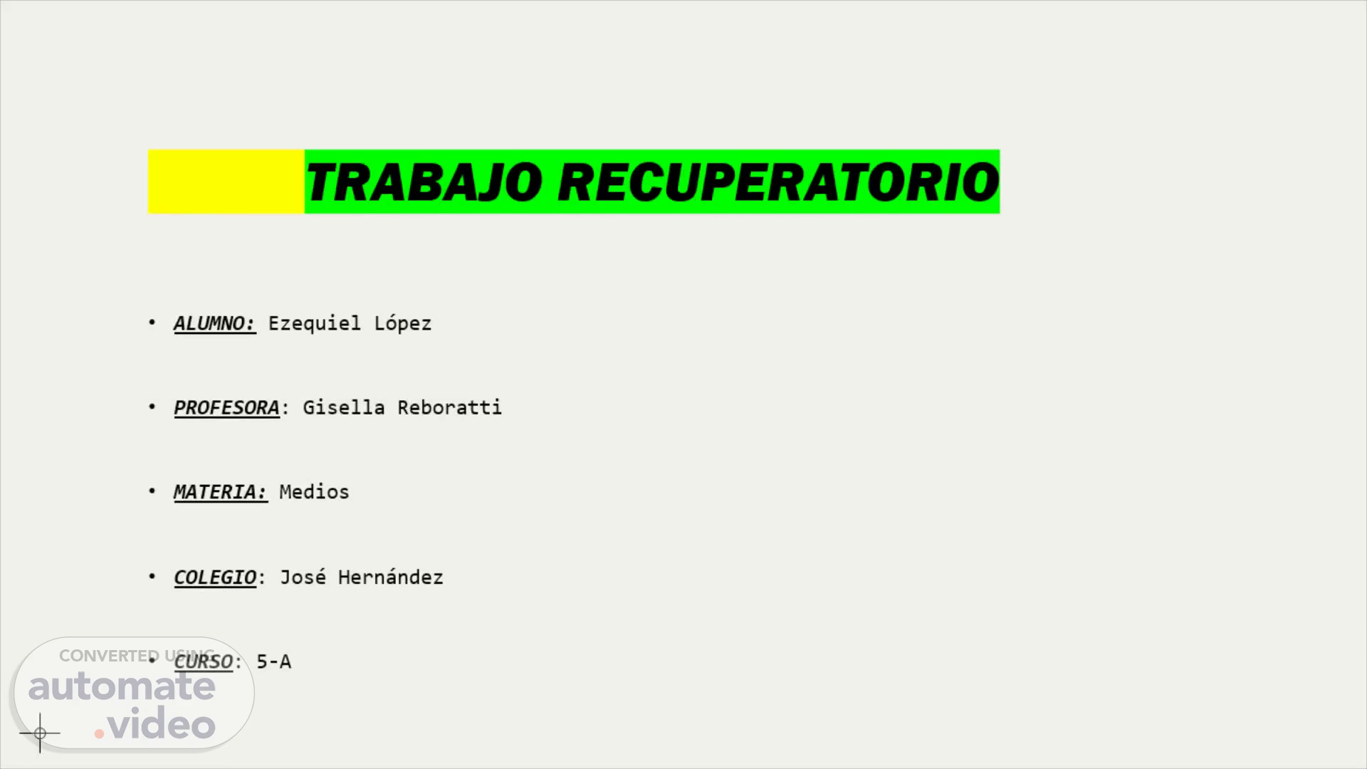 TRABAJO RECUPERATORIO. ALUMNO: Ezequiel López PROFESORA : Gisella Reboratti MATERIA: Medios COLEGIO : José Hernández CURSO : 5-A.