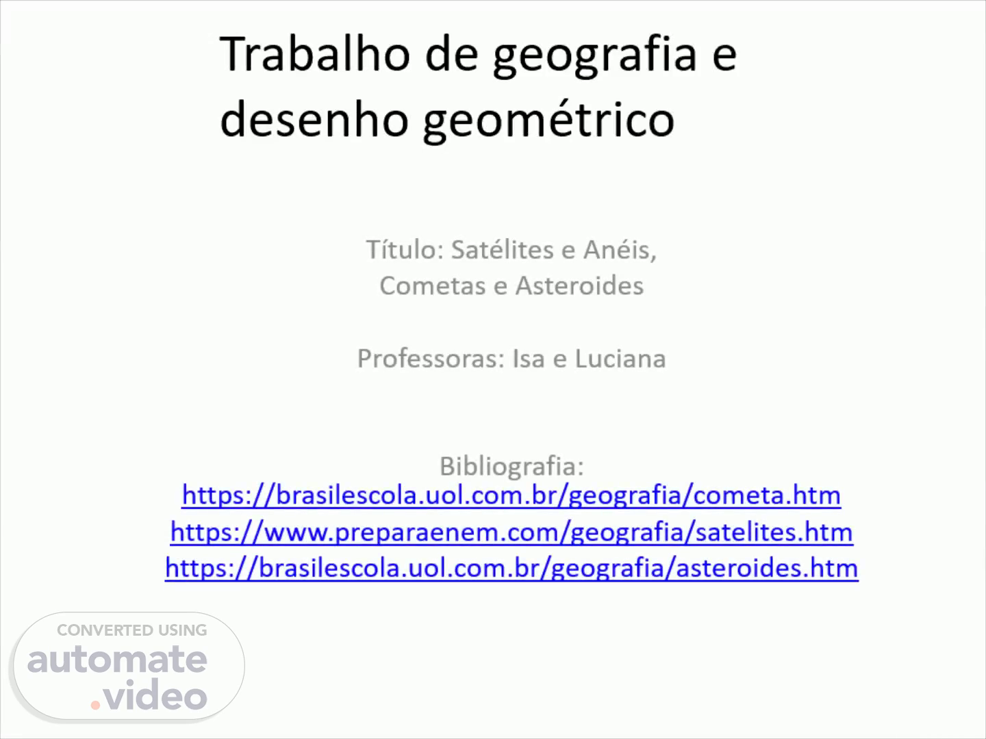 Trabalho de geografia e desenho geométrico. Título : Satélites e Anéis , Cometas e Asteroides Professoras : Isa e Luciana B ibliografia : https://brasilescola.uol.com.br/geografia/cometa.htm https://www.preparaenem.com/geografia/satelites.htm https://brasilescola.uol.com.br/geografia/asteroides.htm.