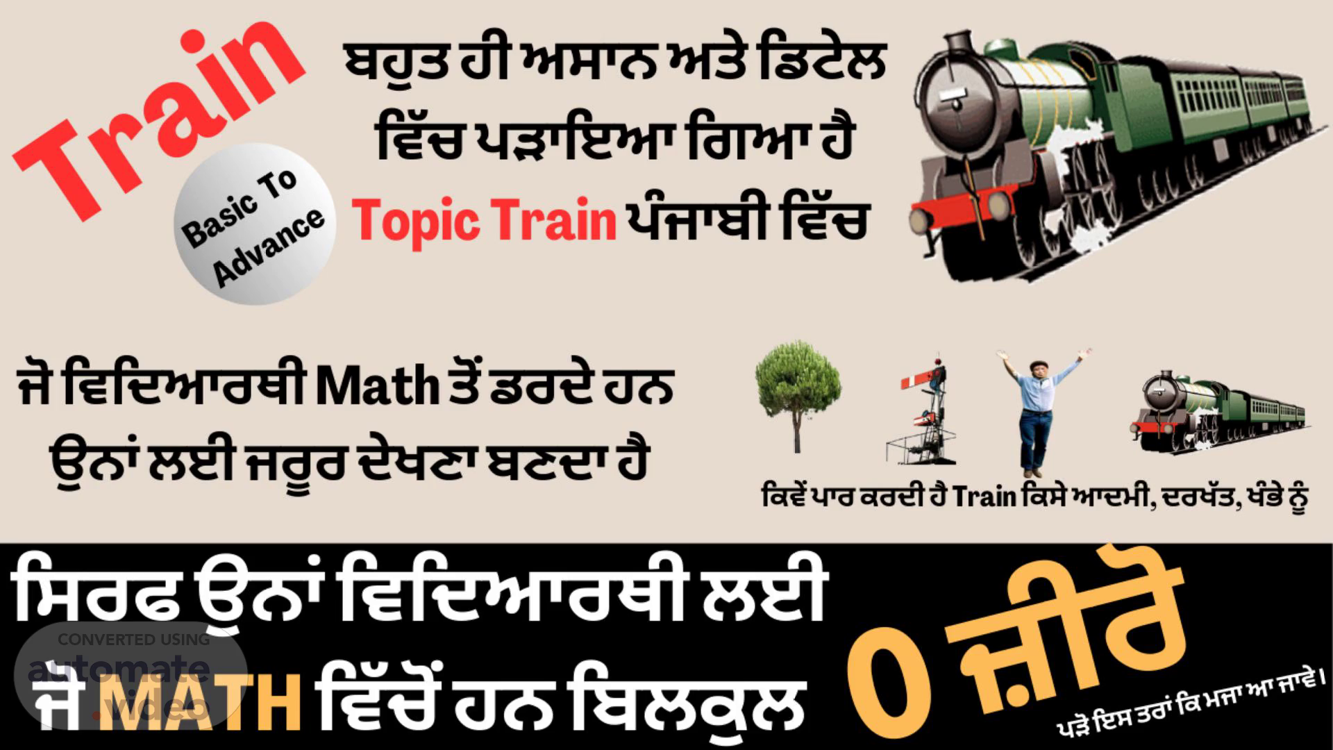 Pole. ਟਰੇਨ ਜਦੋਂ ਵੀ ਕਿਸੇ ਆਦਮੀ ਨੂੰ, ਕਿਸੇ ਪੋਲ ਨੂੰ, ਕਿਸੇ ਚੈੱਕਪੋਸਟ ਨੂੰ, ਕਿਸੇ Tree ਨੂੰ ਪਾਰ ਕਰਦੀ ਹੈ ਤਾਂ ਇਸਦਾ ਮਤਬਲ ਹੈ ਉਹ ਸਿਰਫ ਆਪਣੇ ਆਪ ਨੂੰ ਹੀ ਪਾਰ ਕਰ ਰਹੀ ਹੈ। ਕਹਿਣ ਦਾ ਭਾਵ ਹੈ ਕਿ ਟਰੈਨ ਦੀ ਜਿਨੀ ਲੰਬਾਈ ਹੈ ਉਸਨੇ ਸਿਰਫ ਉਨੀ ਹੀ ਦੂਰੀ ਤੈਅ ਕੀਤੀ ਹੈ। ਕਿਓਕਿਂ ਆਦਮੀ, ਪੋਲ, ਦਰਖੱਤ ਆਦਿ ਦੀ ਕੋਈ ਲੰਬਾਈ ਨਹੀਂ ਹੁੰਦੀ ਹੈ ਇਨਾਂ ਕੇਸਾ ਵਿੱਚ ਟਰੇਨ ਸਿਰਫ ਆਪਣੇ ਆਪ ਨੂੰ ਹੀ ਪਾਰ ਕਰਦੀ ਹੈ।.