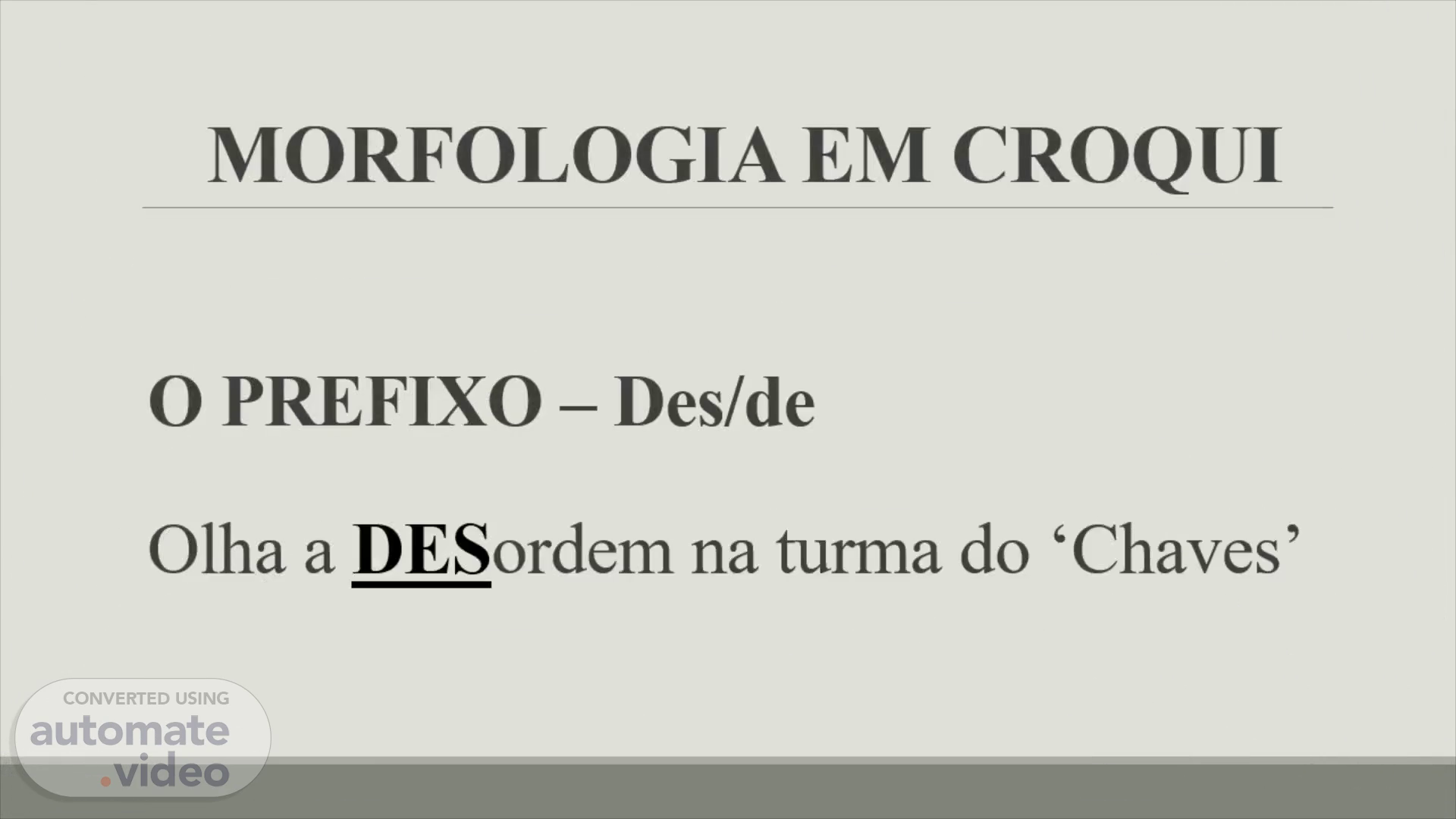 MORFOLOGIA EM CROQUI O PREFIXO – Des/de Olha a DES ordem na turma do ‘Chaves’.