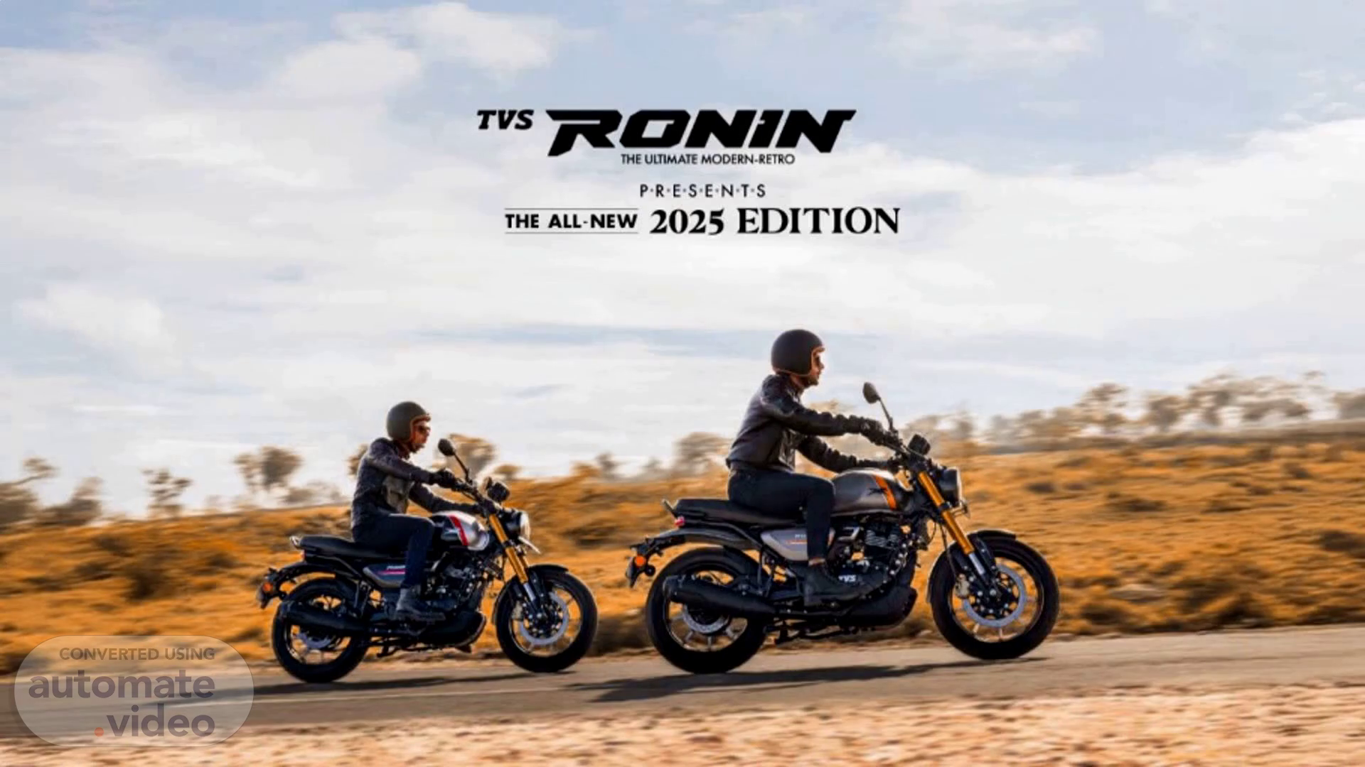 [Audio] We are excited to introduce the all-new 2025 edition of TVS Ronin, an upgraded and modernized version of our iconic motorcycle. This latest model boasts a new number plate holder which not only adds a sleek touch, but also improves functionality and safety. Our commitment to innovative design is evident in the seamless blending of classic and contemporary elements in the TVS Ronin. The 2025 edition takes it to a whole new level with advanced features such as a digital display, LED headlamps, and an upgraded engine. This combination of style and performance sets a new standard in the modern-retro motorcycle market. You can expect a unique and powerful riding experience with the TVS Ronin 2025, as we have infused classic design with the latest technology and features. Stay tuned for more exciting updates on TVS and our dedication to bringing you the best in modern-retro motorcycles..