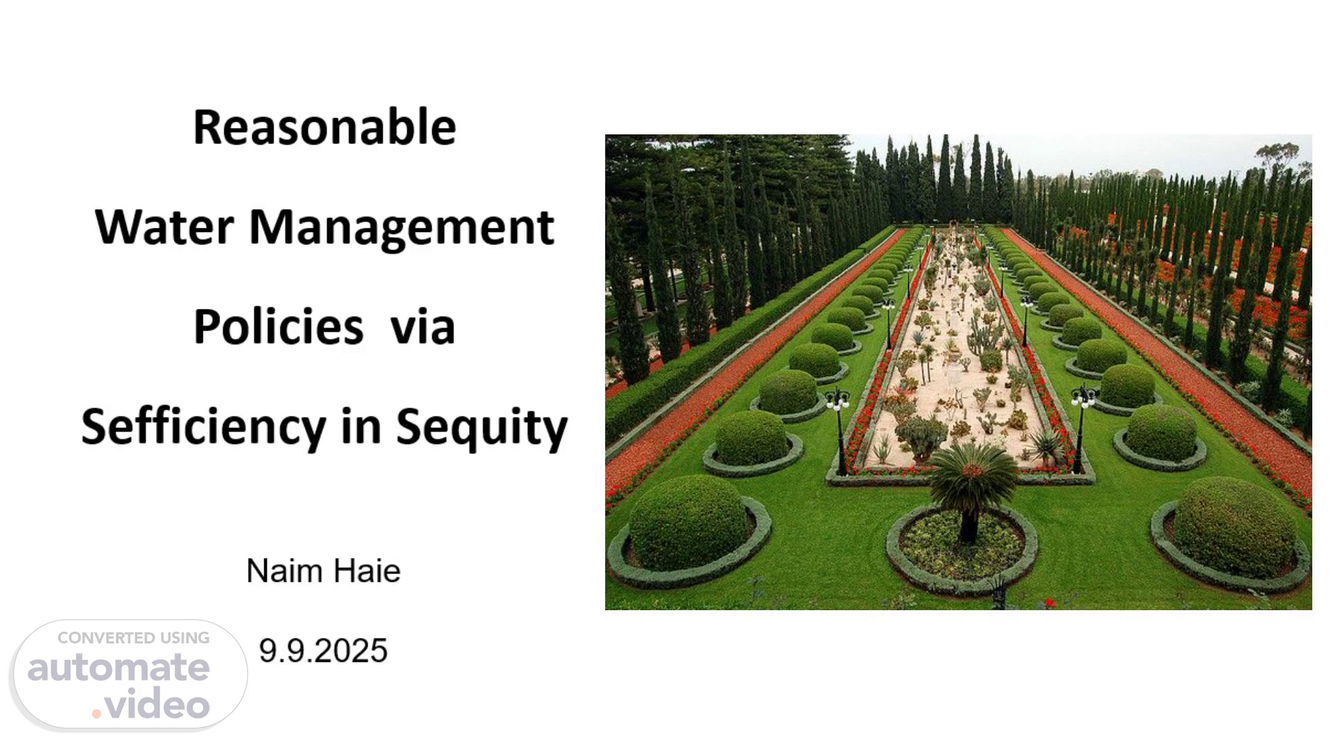 [Audio] This is a brief introductory presentation of an alternative to current Water Management frameworks. The aim is to introduce the starting concepts of Sefficiency in Sequity paradigm with Reasonable decision-making processes..