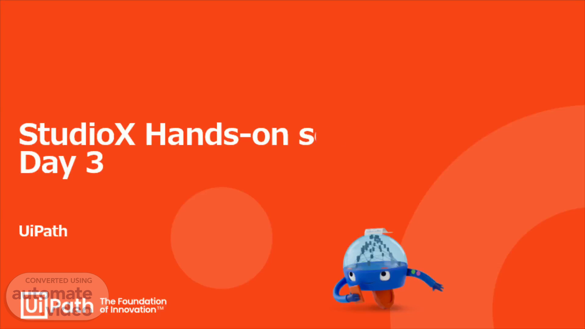 © 2023 UiPath K.K.. StudioX Training Agenda. StudioX Training Day1 (2 hours) 11 Oct 2023 17:00-19:00(JPT) StudioX Training Day2 (2 hours) 13 Oct 2023 17:00-19:00(JPT) StudioX Training Day3 (2 hours) 16 Oct 2023 17:00-19:00(JPT) StudioX Training Day4 (2 hours) 18 Oct 2023 17:00-19:00(JPT) Introduction What is RPA Overview of Automation Training Program Training Session StudioX interface First Automation Challenge Application/Browser Automation Wrap up Day1 Recap Training Session Excel Automation Iterative and Decision File and Folders Automation Wrap up Day2 Recap Training Session What is Project Notebook How to use Project Notebook Variable in StudioX Wrap up Day3 Recap Training Session Handle Errors in StudioX Automations with other Apps Best practice for StudioX Practice Session Wrap up.